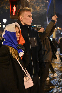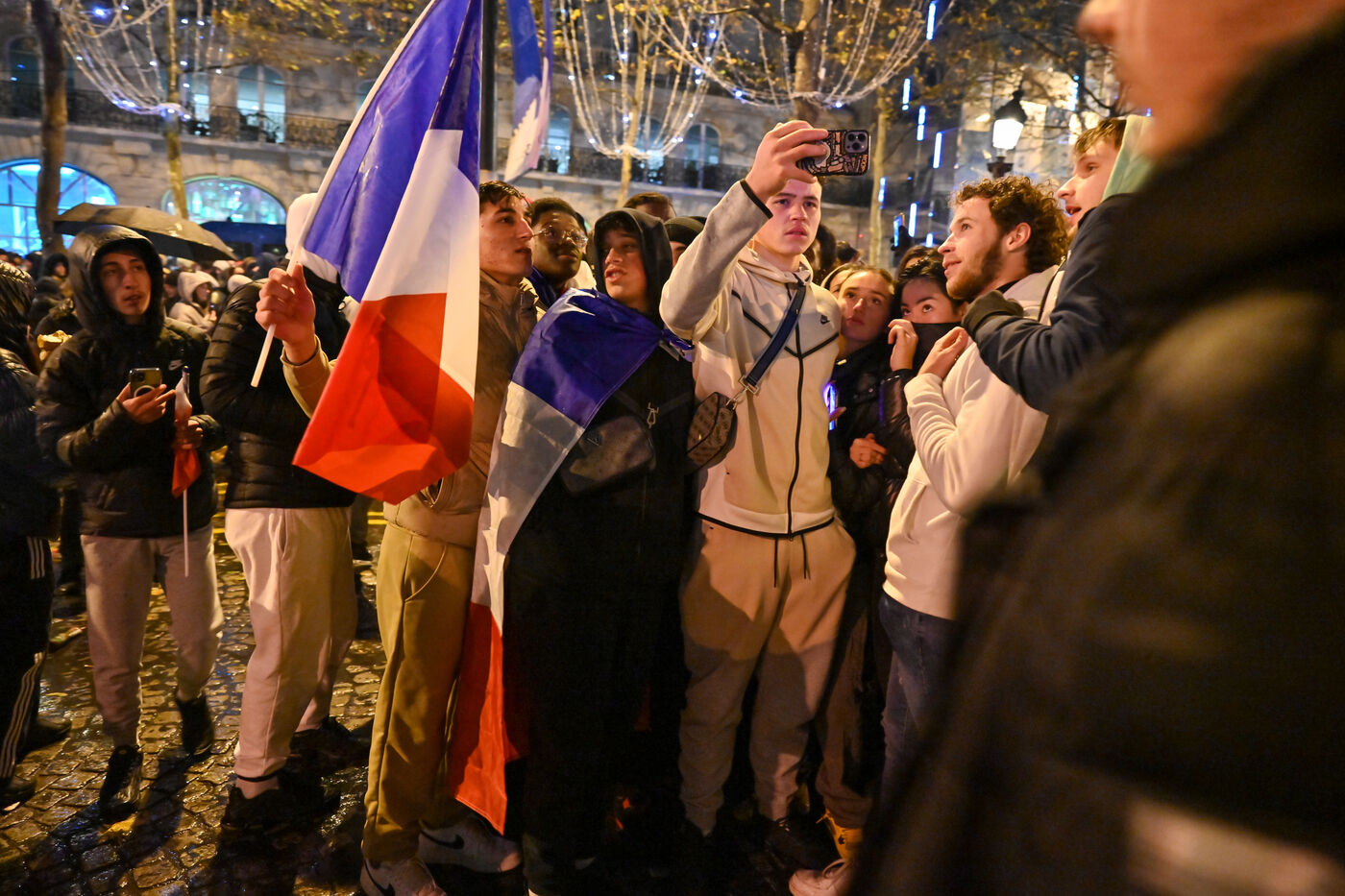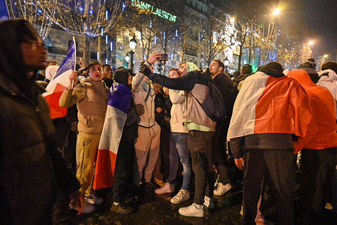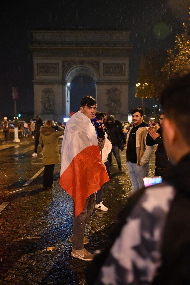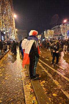 French supporters during the France-Argentina world cup final on the Champs-Elysées.