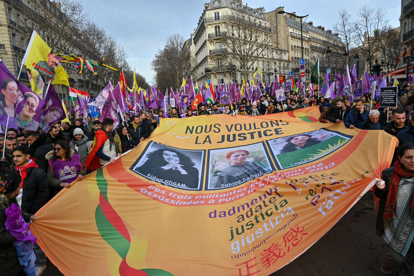 March for truth and justice organized on the occasion of the anniversary of the assassination of the Kurdish activists: Fidan Dogan, Sakine Cansiz and Leyla Saylemez. The CDK-F is demanding justice, the lifting of the secrecy and an end to impunity for political crimes. This march of the Kurdish community also pays homage to the singer Mir Perwer, Evin Govi and Abdurrahman Kizil, all three of whom were killed on 23 December 2023 on the rue d'Enghien in Paris.