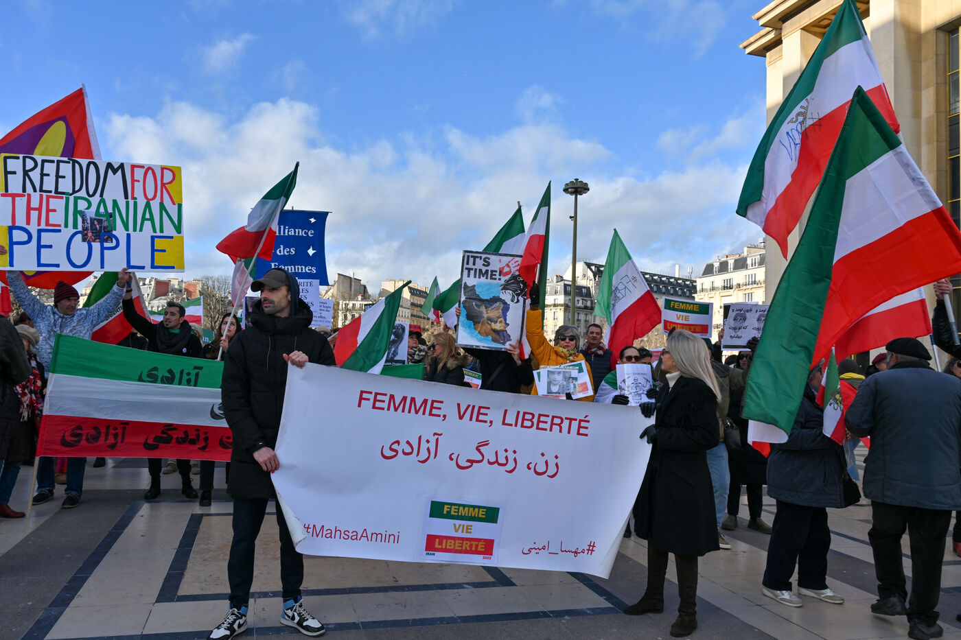 Manifestation dimanche 15 janvier 2023 en soutien aux iraniennes et iraniens qui manifestent au péril de leur vie depuis plus de quatre mois. Il s agit de la première manifestation à l initiative de l intercollectif France-Iran.
