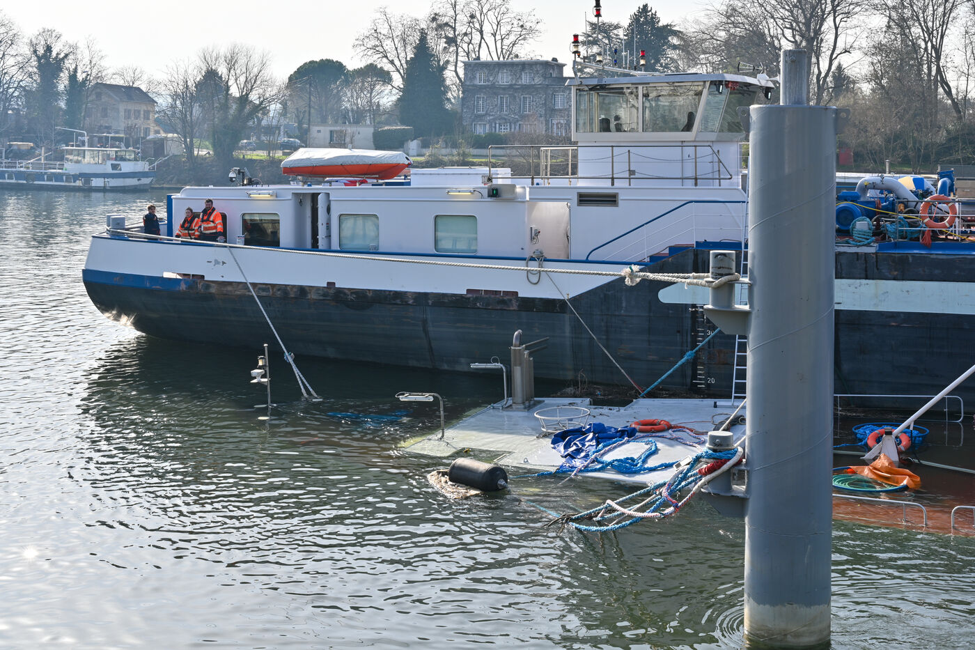 UNE BARGE AVEC DU NITRATE S ABIME A TRIEL SUR SEINE