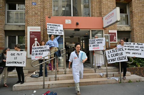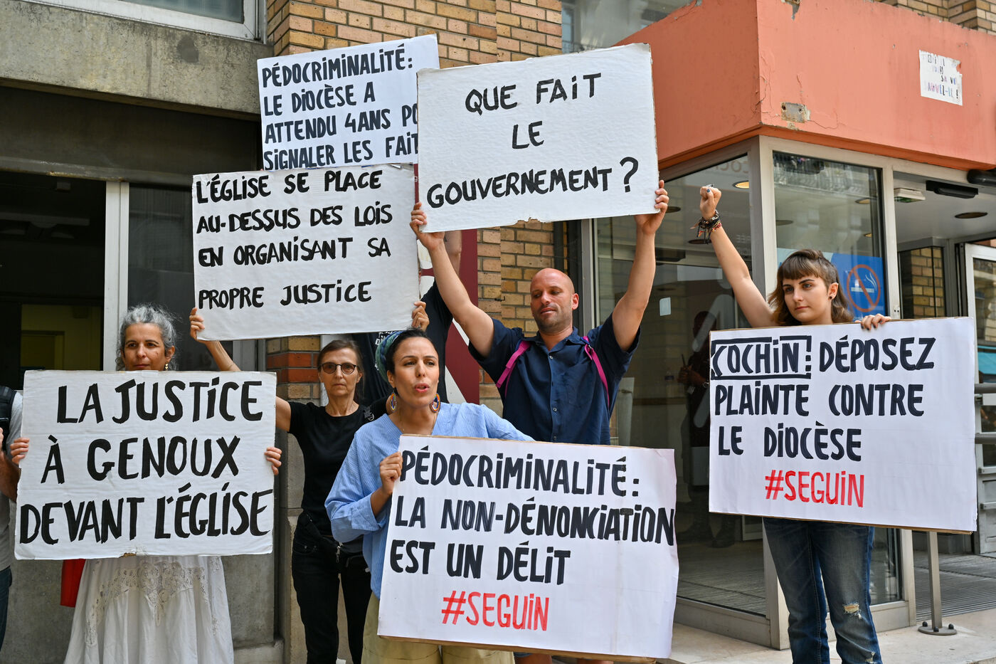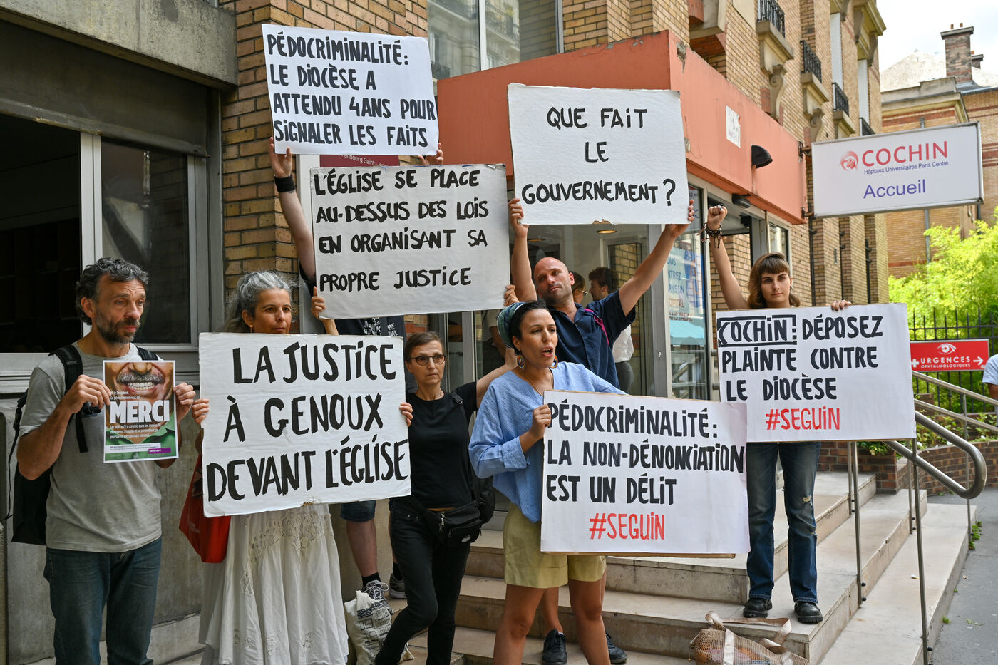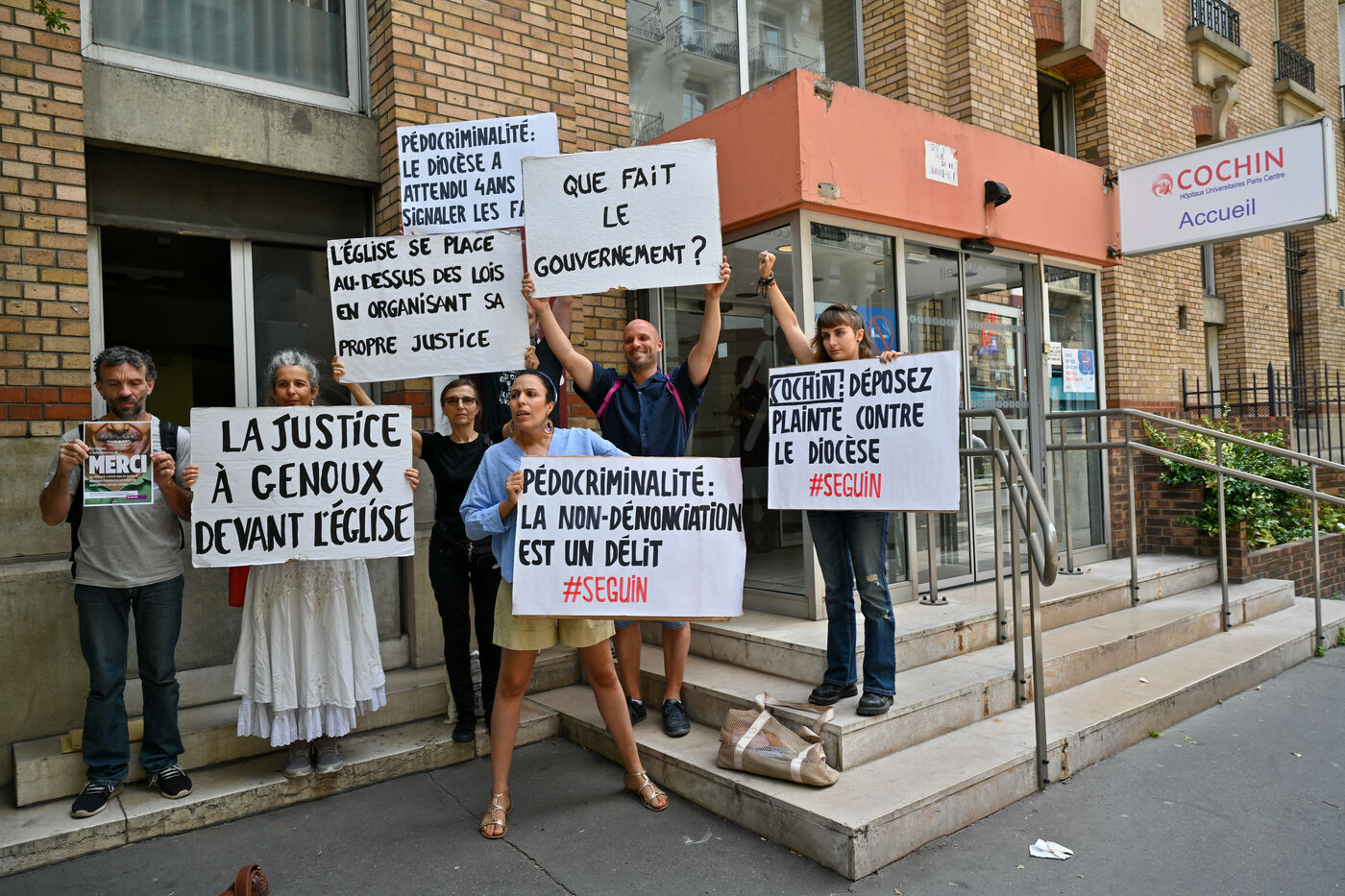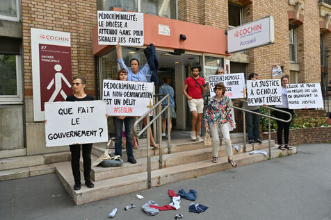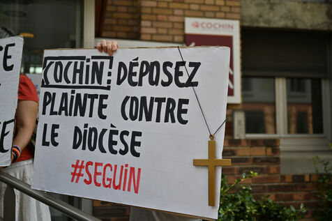 Happening by Be Brave France against Guillaume Seguin. Sexual violence: Catholic chaplain Guillaume Seguin is to be suspended by the AP-HP.