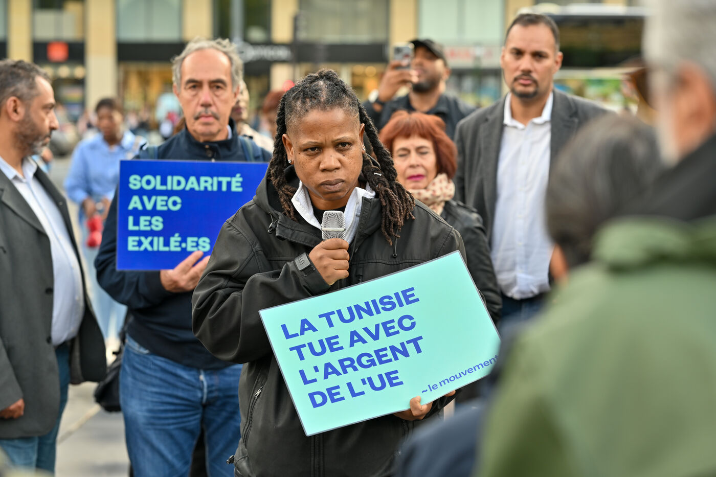 Gathering at Republic Square to denounce the Tunisian government's inhumane treatment of migrants. For over a month, the migrant situation in Tunisia has been denounced by NGOs such as Human Rights Watch and Amnesty International, who have referred to "raids" and "racist deportations."