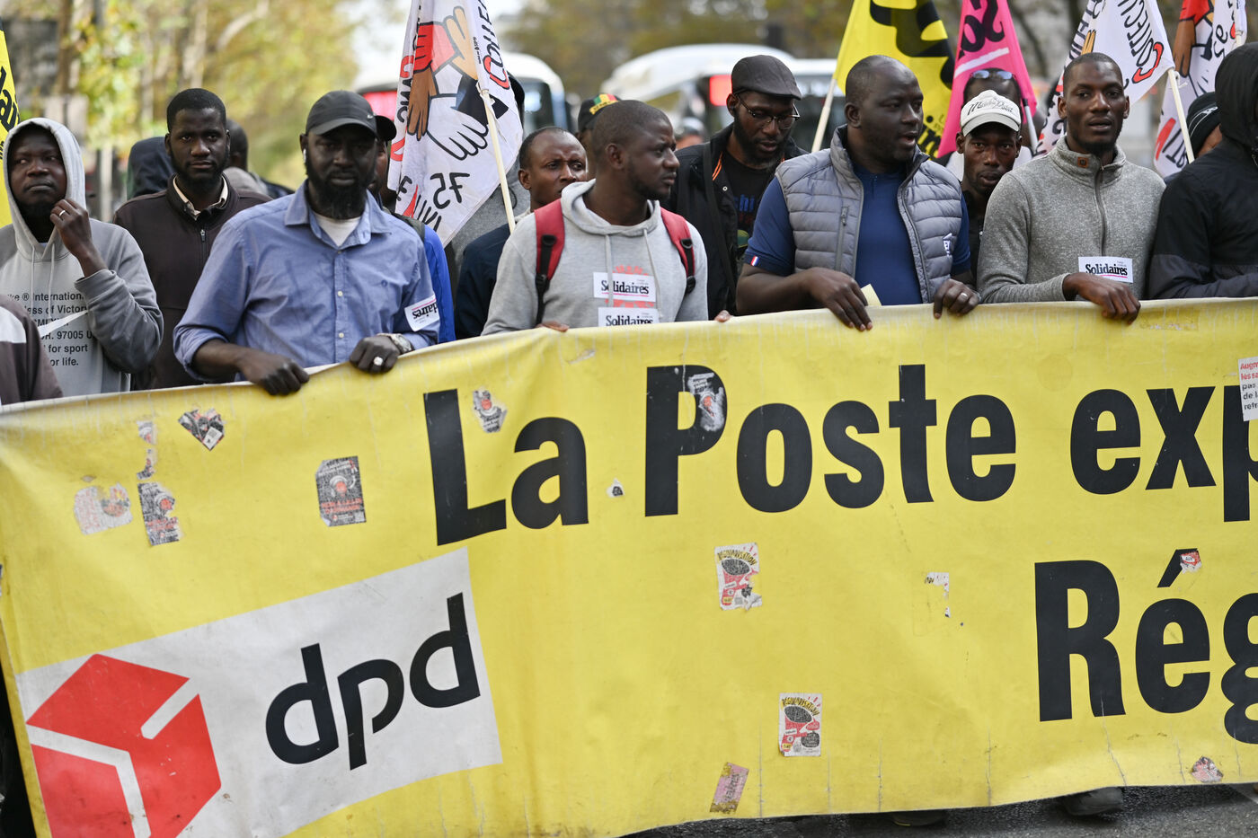 Manifestation de soutien aux postiers et travailleurs grévistes sans-papiers (Chronopost, DPD, RSI). Ils sont en grève depuis fin octobre 2021.