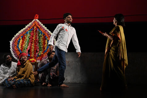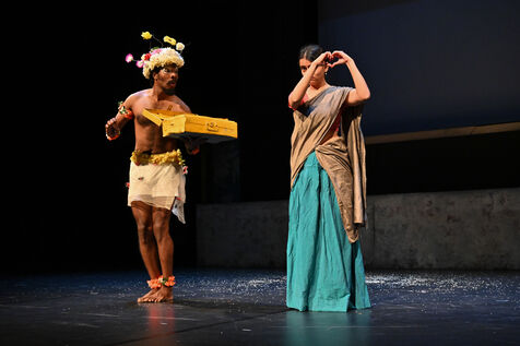 Chandâla, The Impure" by the Indianostrum Theatre of Pondicherry, directed by Koumarane Valavane. The troupe takes up the myth of Romeo and Juliet to denounce the caste system in India. This system prevents young people from different communities from loving each other, knowing that 'chandâla' designates the untouchable, the impure, excluded from everything, on the pretext that they pollute the air, water, and others. These untouchables number two hundred million in India.