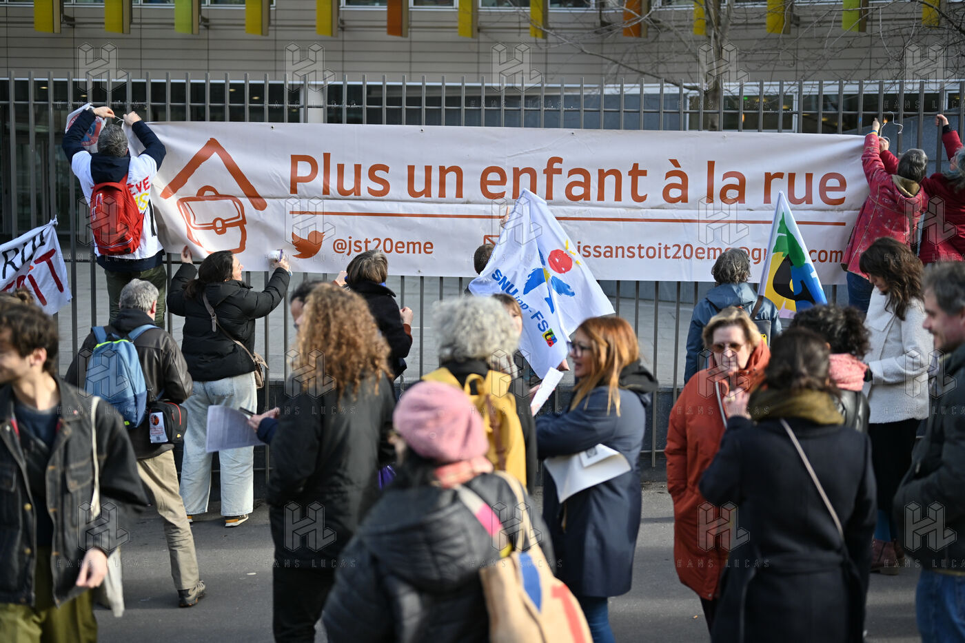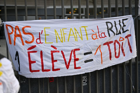 In Paris, as well as throughout France, many schools are dealing with situations where students are sleeping on the streets with their families or living in extreme precarity. Gathering on the occasion of the International Day of Education in front of the Paris Rectorate.