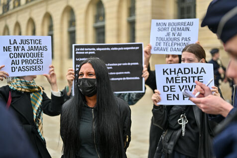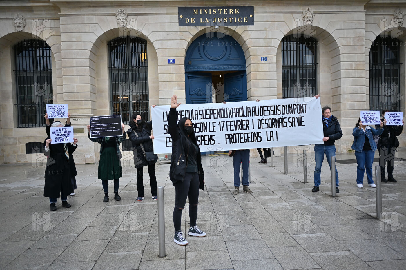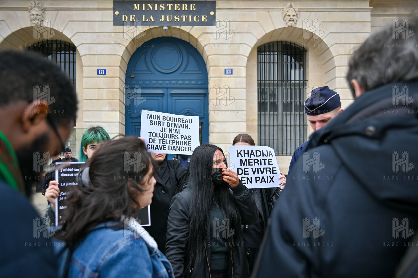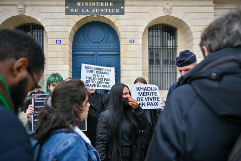 Devant le ministère de la justice, Place Vendôme, Khadija la combattante et des militants ont manifesté pour alerter le gouvernement sur le risque de féminicide encouru par Khadija. Ancienne femme battue, elle s'inquiétait de la sortie de prison ce samedi de son ex-conjoint violent. Ce dernier a finalement été expulsé du sol français, où il n'était pas en situation régulière.