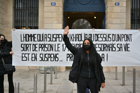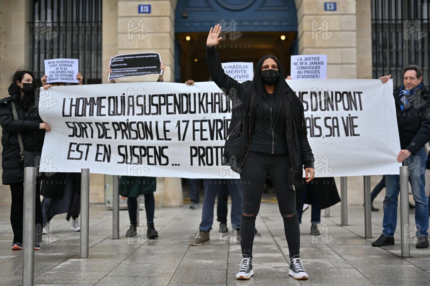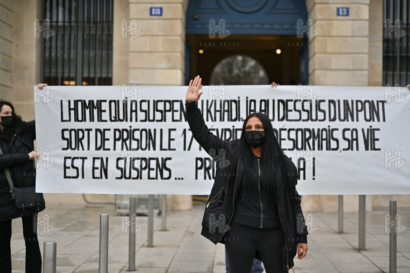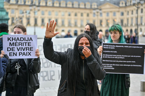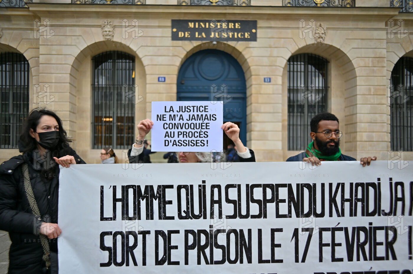 Devant le ministère de la justice, Place Vendôme, Khadija la combattante et des militants ont manifesté pour alerter le gouvernement sur le risque de féminicide encouru par Khadija. Ancienne femme battue, elle s'inquiétait de la sortie de prison ce samedi de son ex-conjoint violent. Ce dernier a finalement été expulsé du sol français, où il n'était pas en situation régulière.