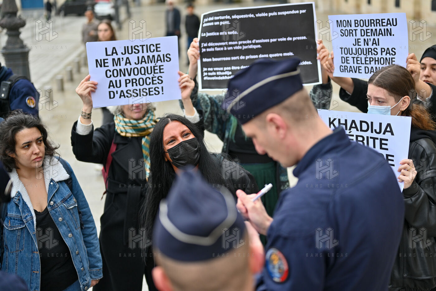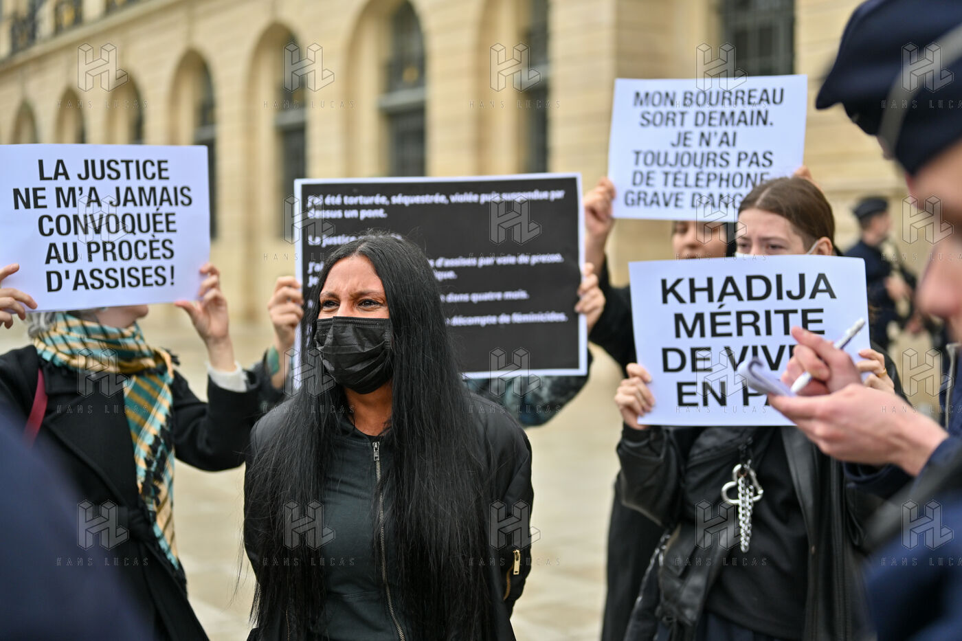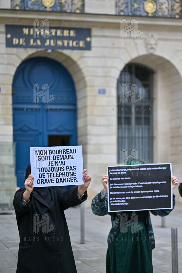 In front of the Ministry of Justice, at Place Vendôme, Khadija the fighter and activists protested to alert the government about the risk of femicide faced by Khadija. Former battered woman, she was worried about her violent ex-partner's release from prison this Saturday. He was ultimately deported from French soil, where he was not in a regular situation.