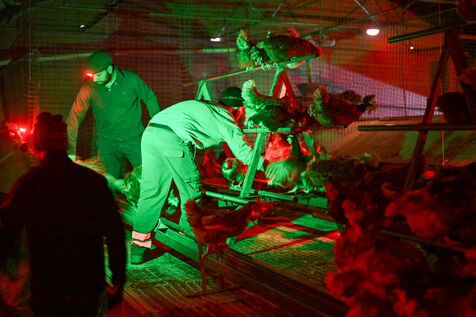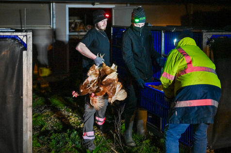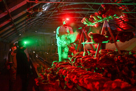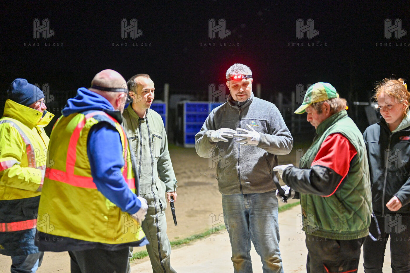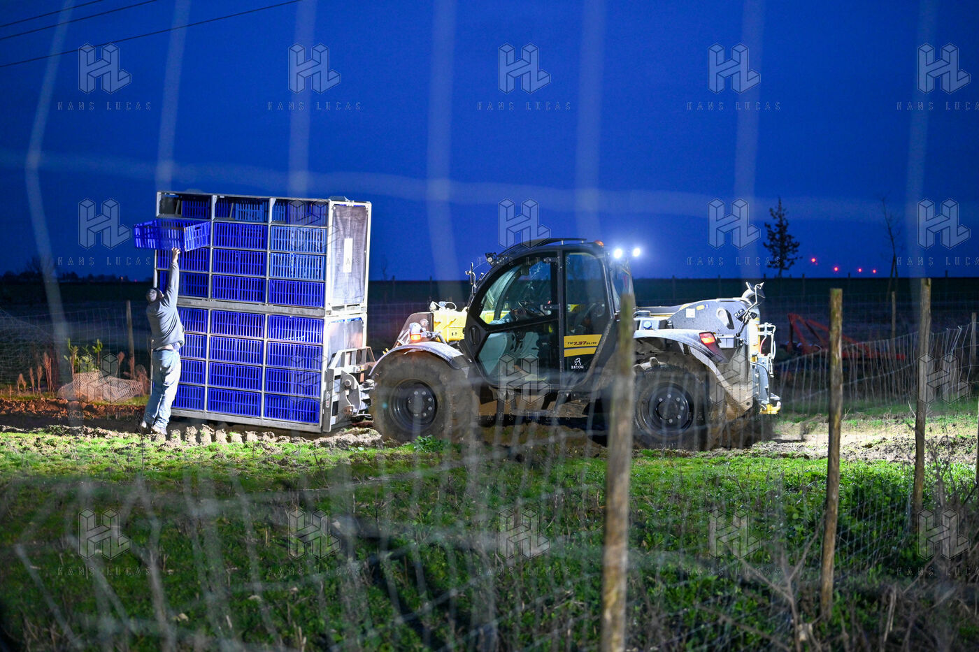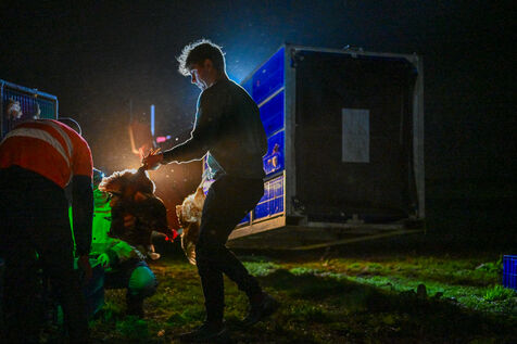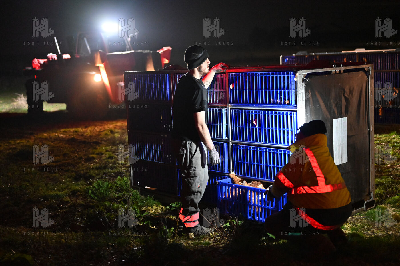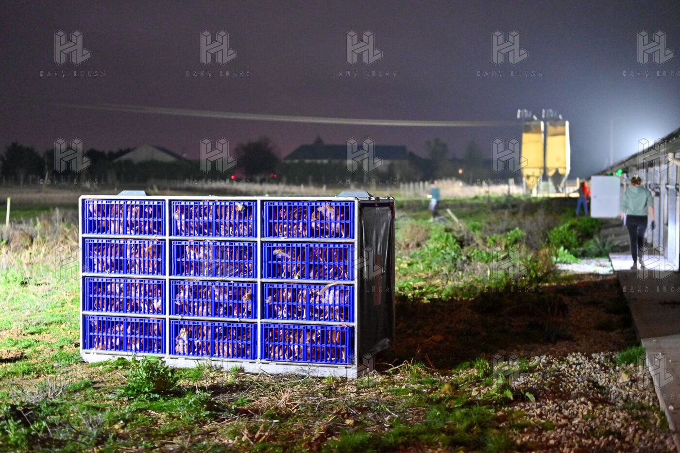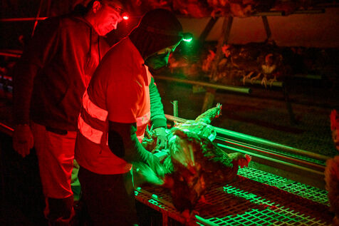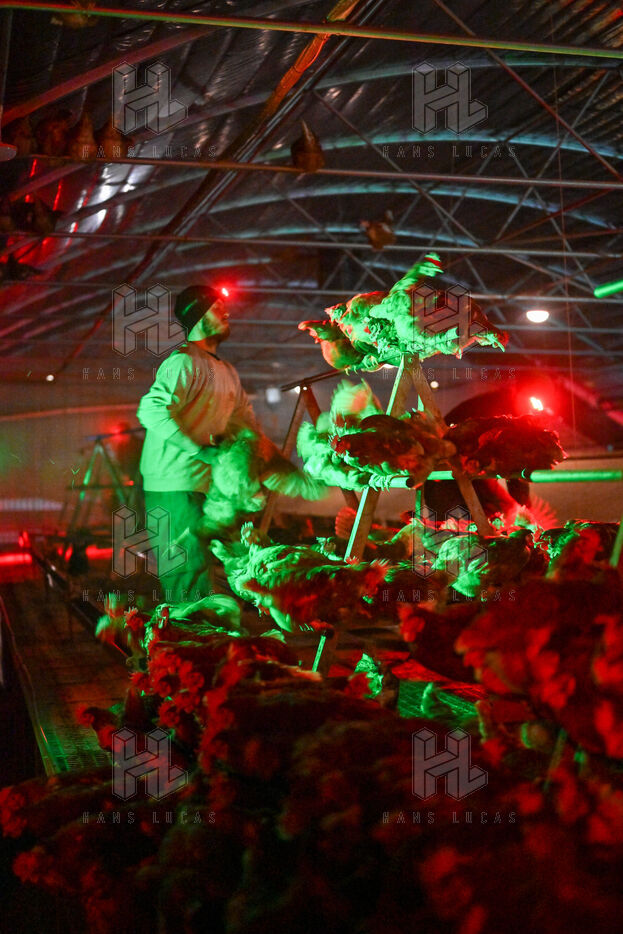 In the heart of the Beauce region, as night falls, this family-owned farm, specializing in the breeding of 9000 laying hens and the production of organic farm products, prepares for a busy evening. Under the red glow of headlamps, poultry gatherers enter the building to begin their collection. The collection team, consisting of 3 seasoned professionals and several friends of the farmer, gets to work. Within two hours, nearly 8000 hens are placed into crates and loaded onto a truck that will head to the slaughterhouse.