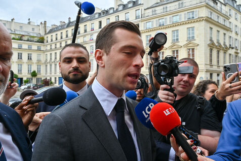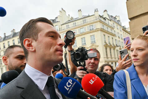 Jordan Bardella, president of the National Rally (RN) party, arrives at the Palais Bourbon of the National Assembly on the occasion of the welcoming days for deputies elected in the second round of the 2024 legislative elections.