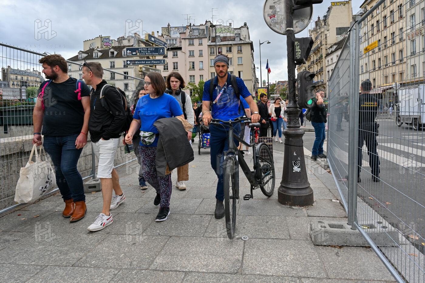 Illustration des barrières mises en place pour les préparatifs des Jeux Olympiques de Paris 2024, a Paris, France, le 24 juillet 2024.