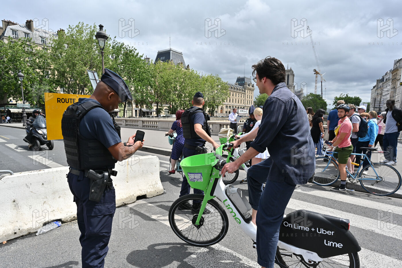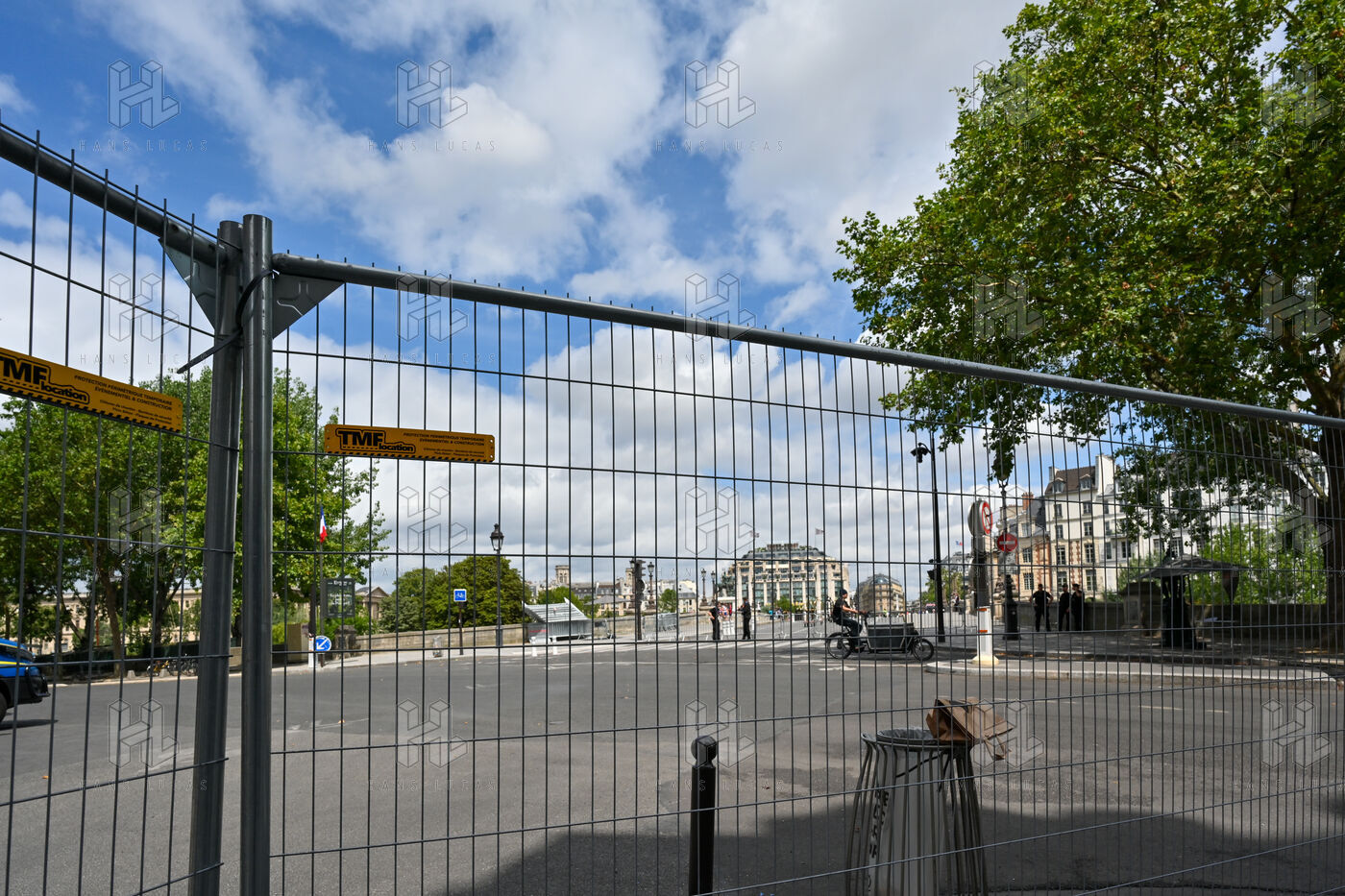 Illustration of the barriers put in place for the preparations of the Paris 2024 Olympic Games, in Paris, France, on July 24, 2024.