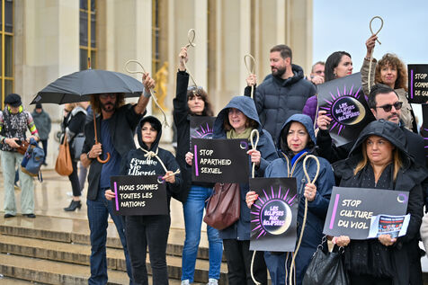 Rassemblement pour condamner les pendaisons en République islamique d'Iran et dénoncer les régimes islamistes qui instaurent un apartheid basé sur le genre et le sexe, tout en perpétrant une violence extrême contre les femmes.