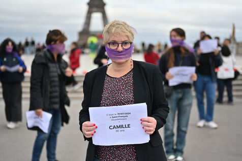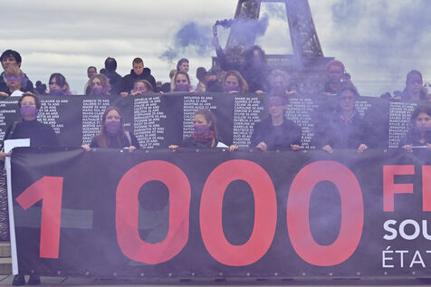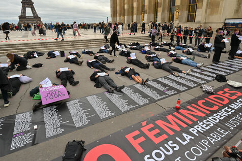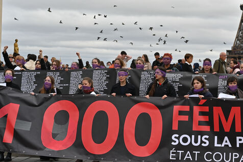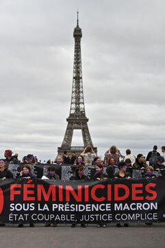 Manifestation à l'appel du mouvement féministe Nous Toutes (#NousToutes) contre les féminicides pour rendre hommage à toutes les femmes assassinées depuis le 1er quinquennat d Emmanuel Macron.