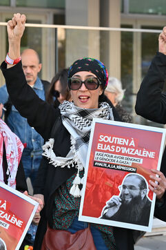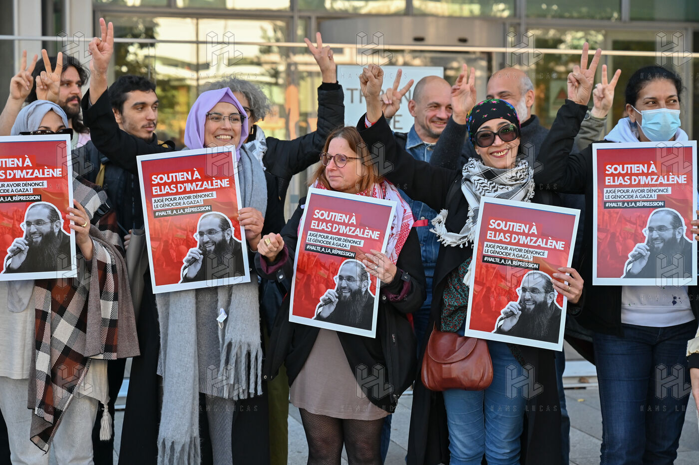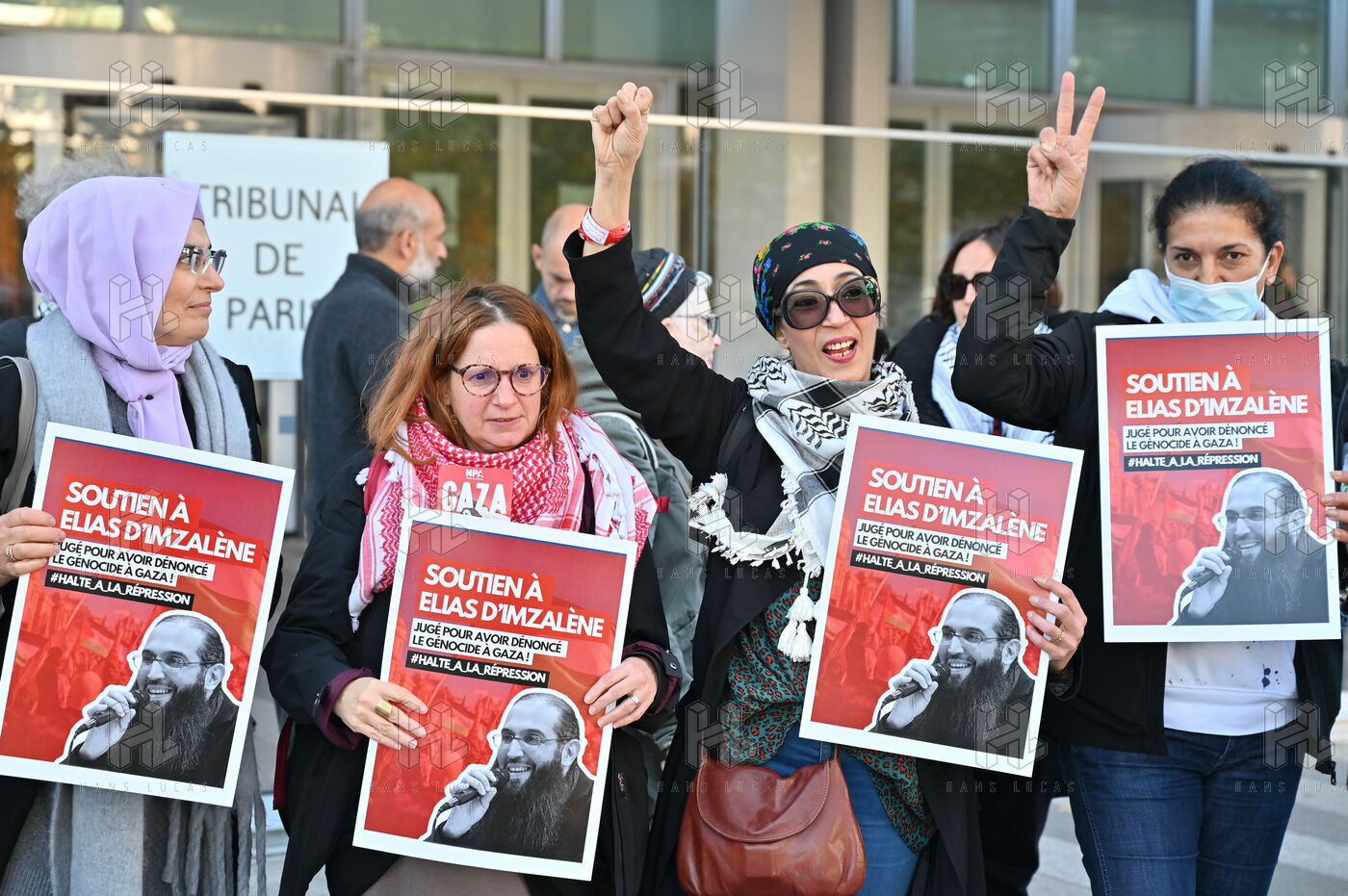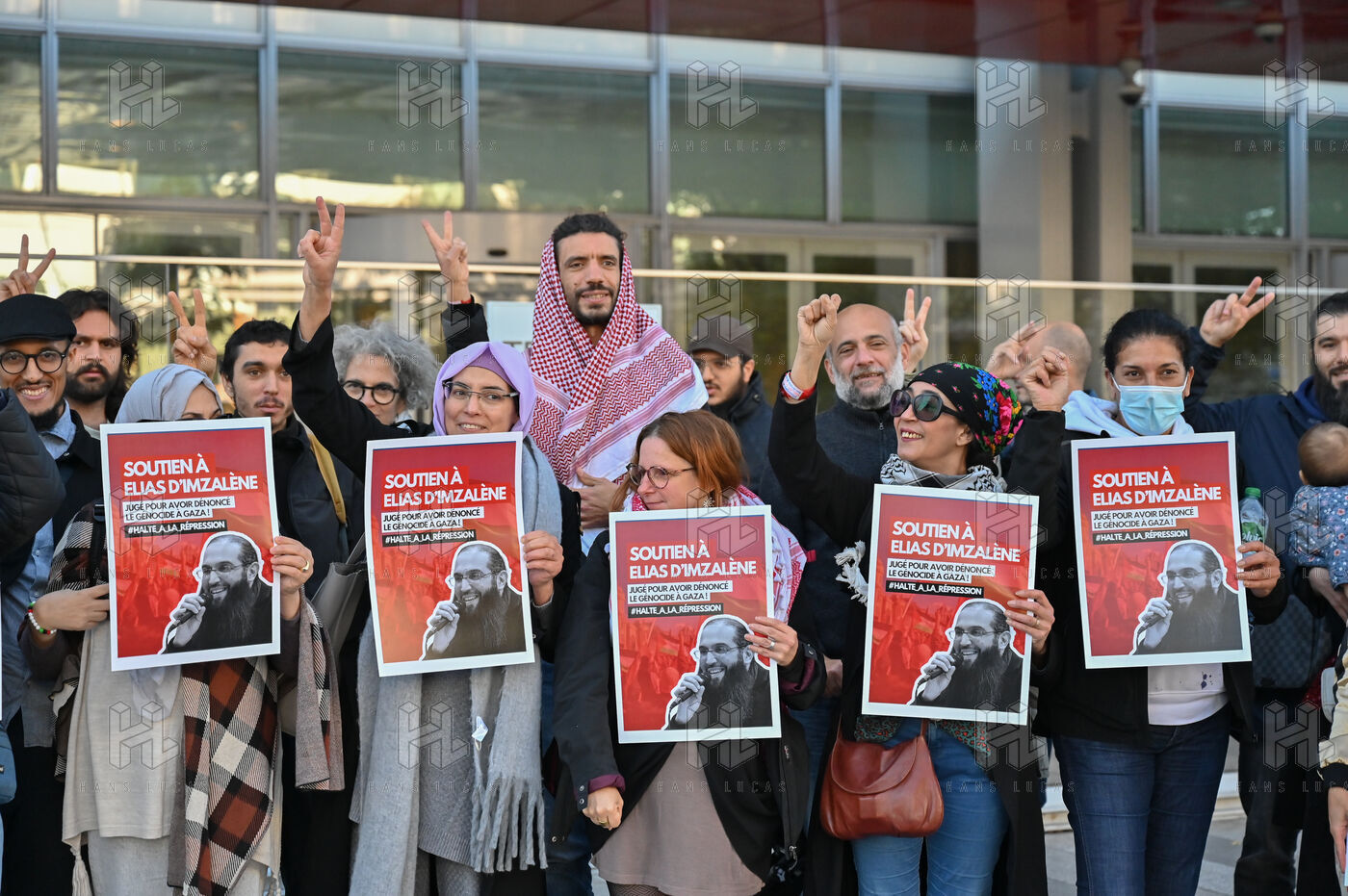 Support rally for pro-Palestinian activist Elias d'Imzalene, who is appearing this Wednesday, October 23, before the correctional court in Paris. He is being prosecuted after calling to lead the intifada in Paris during a demonstration held in the capital in early September.
