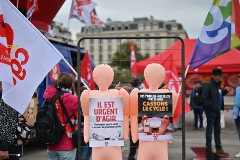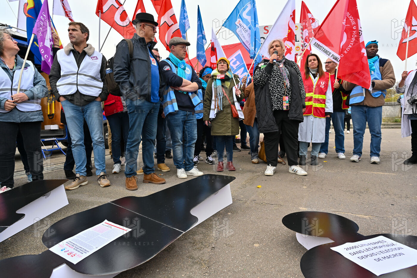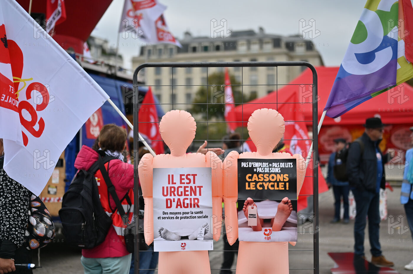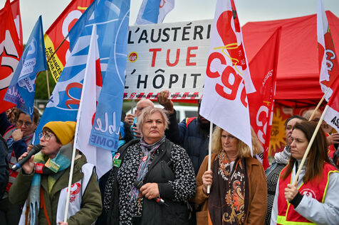 The trade unions CGT, FO, SUD, and UNSA gathered at Les Invalides to defend healthcare, social, and medico-social establishments.