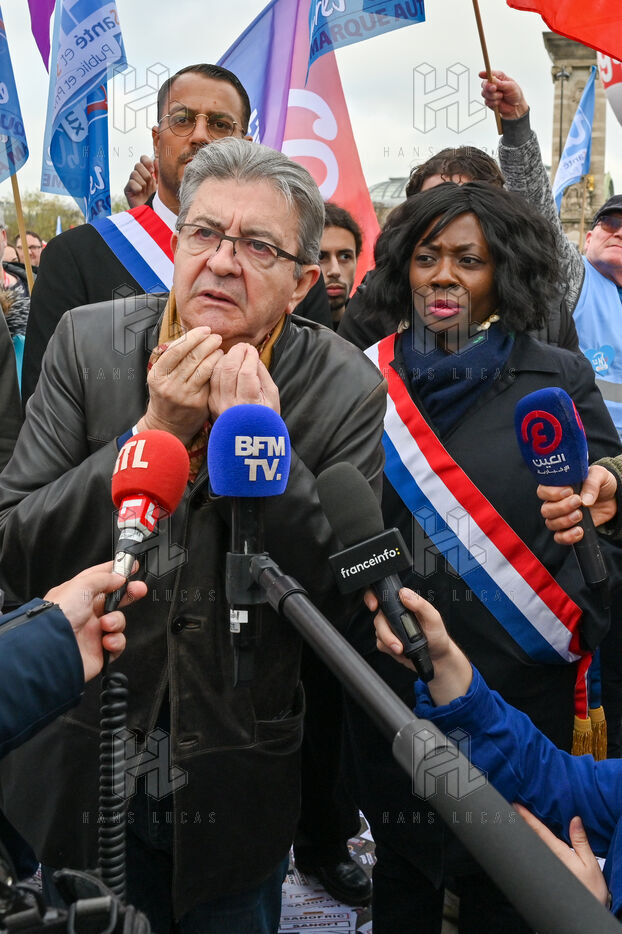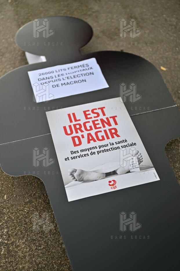 Les organisations syndicales, CGT, FO, SUD et UNSA se sont rassembles aux Invalides pour defendre les etablissements du sanitaire, du social et du medico-social.