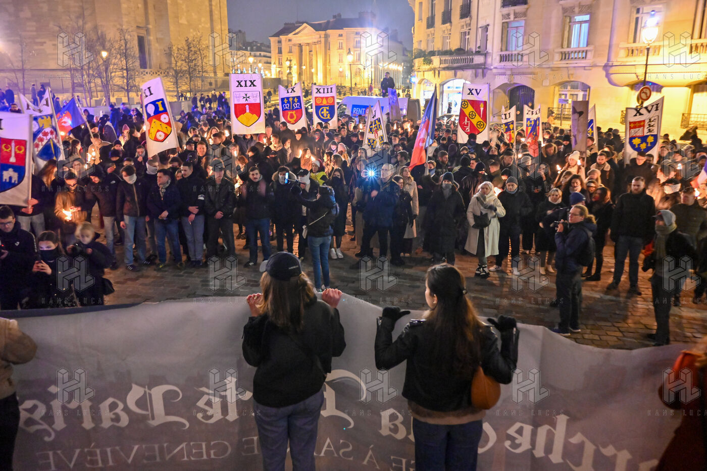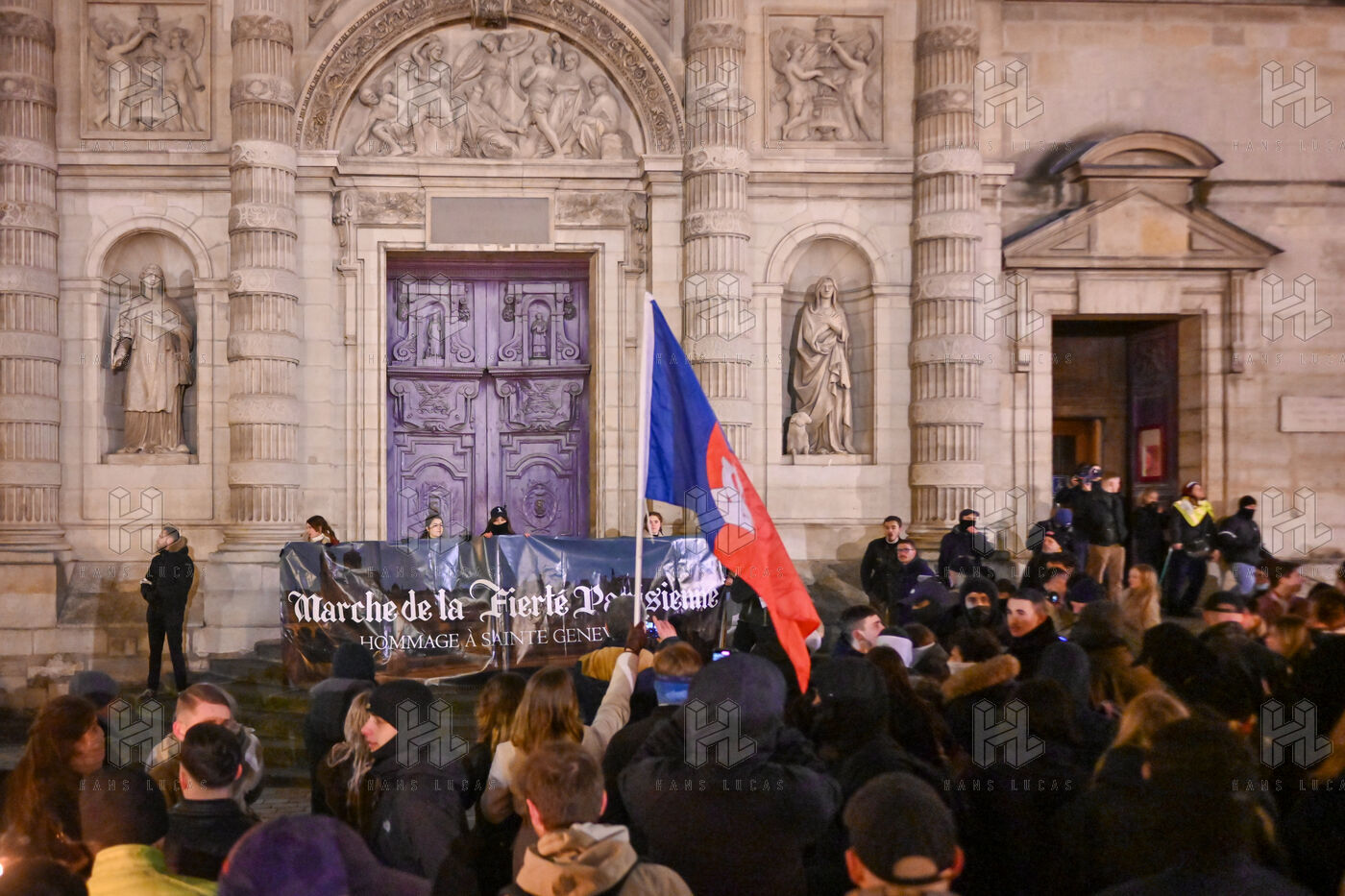 L’association Paris Fierte, emanation du groupuscule d’extreme droite dissous Generation identitaire, organise une marche aux flambeaux dans les rues de Paris en l honneur de Sainte Genevieve.