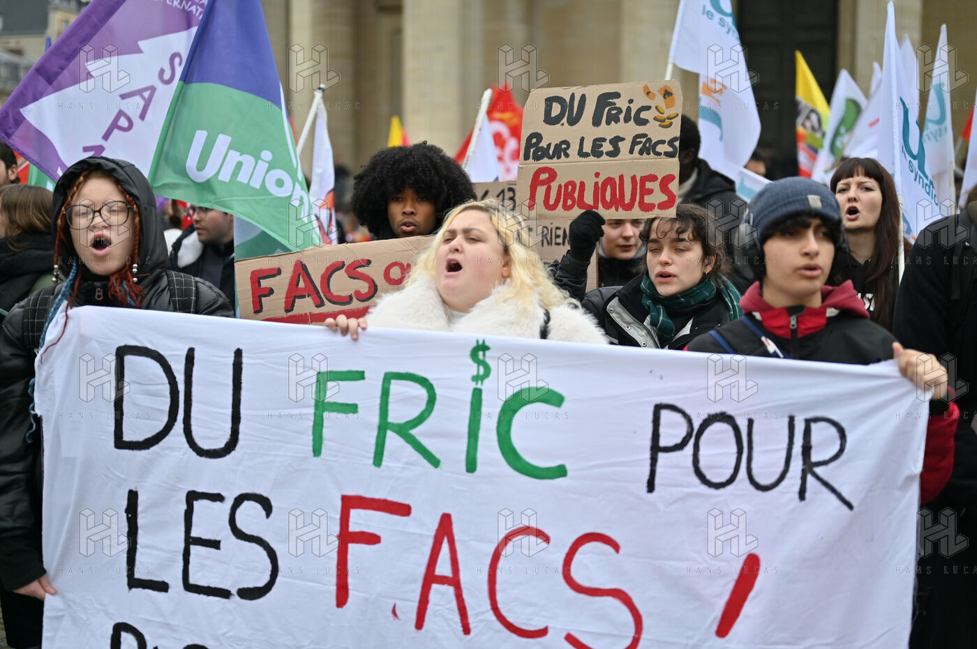 Student organizations and the inter-union of Higher Education are demonstrating to protest against "budget cuts" in the Bayrou government's budget.