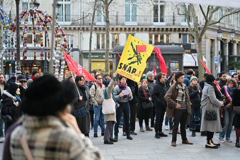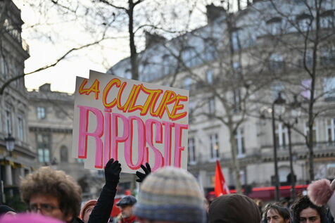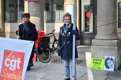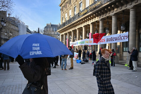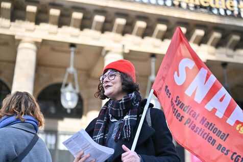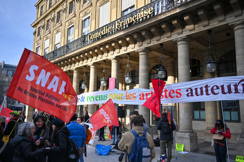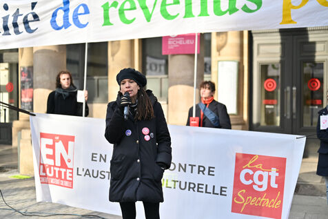 Facing budget cuts, the disengagement of public actors, the precarization of professions, and the weakening of rights, art and culture workers gather at Place Colette, in front of the Comédie-Française.