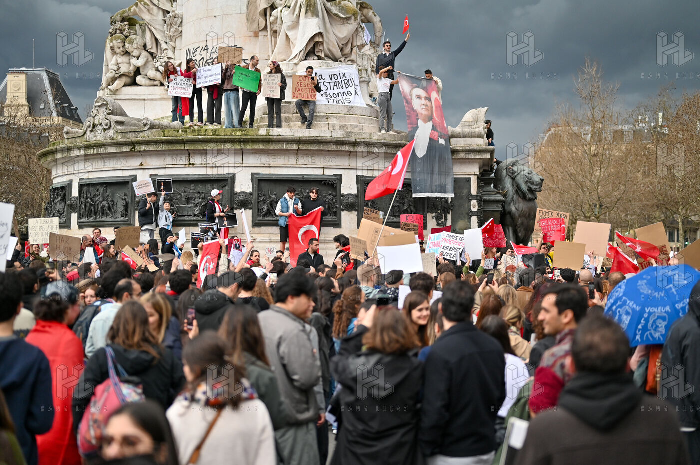 Des manifestants étaient réunis samedi à Paris, Place de la République, en soutien au maire d'opposition d'Istanbul, Ekrem Imamoglu, accusé de corruption et de terrorisme et arrêté en tant que principal opposant au président Recep Tayyip Erdogan.