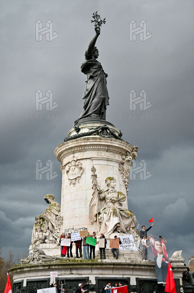 Protesters gathered on Saturday in Paris' Place de la République in support of Istanbul's opposition mayor, Ekrem Imamoglu, accused of corruption and terrorism and arrested as the main opponent of President Recep Tayyip Erdogan.