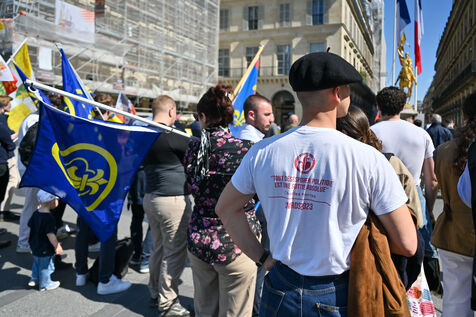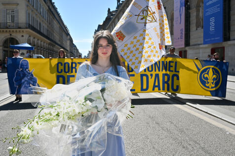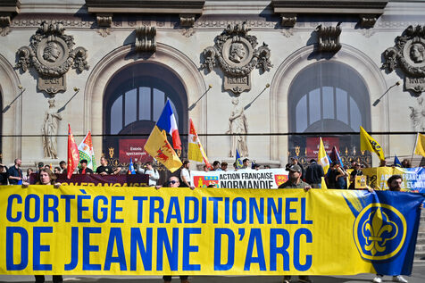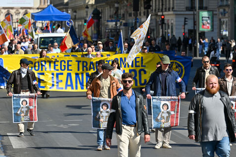 L'Action française a defilé dimanche 14 mai en hommage a Jeanne d'Arc. Le rassemblement est parti de l'Opera en direction de la statue de Jeanne d'Arc place des Pyramides.