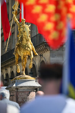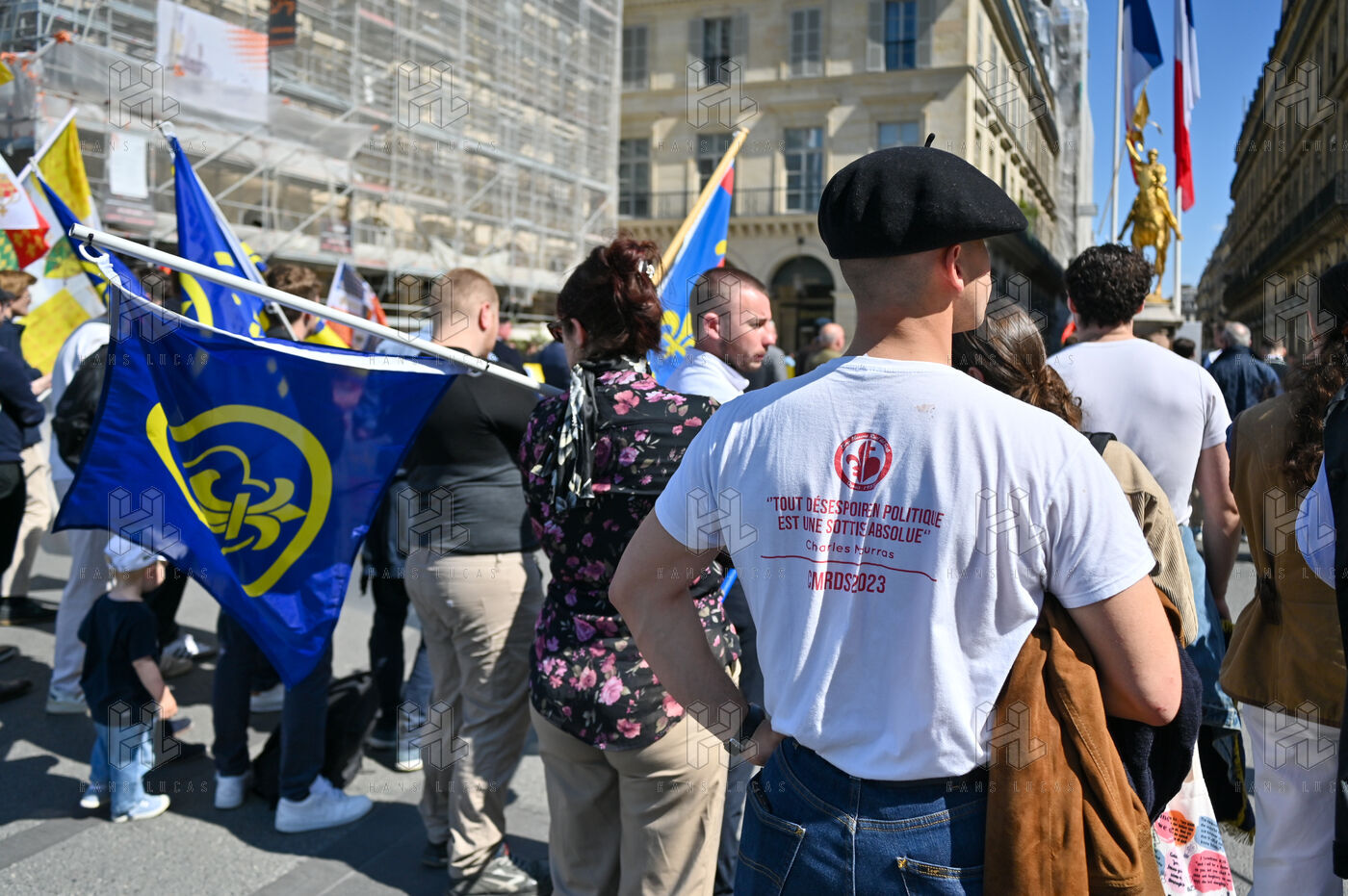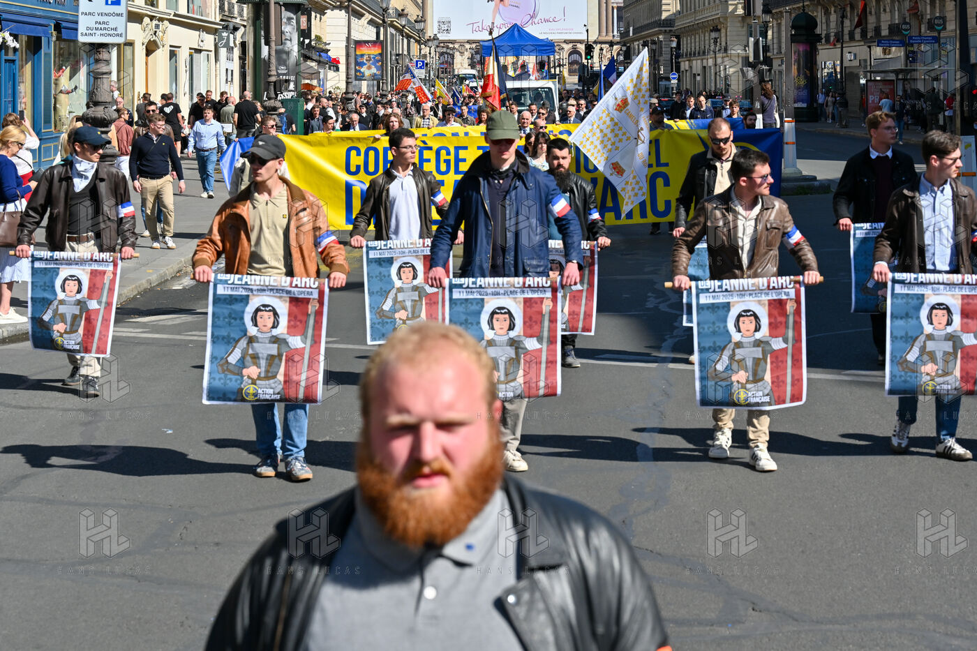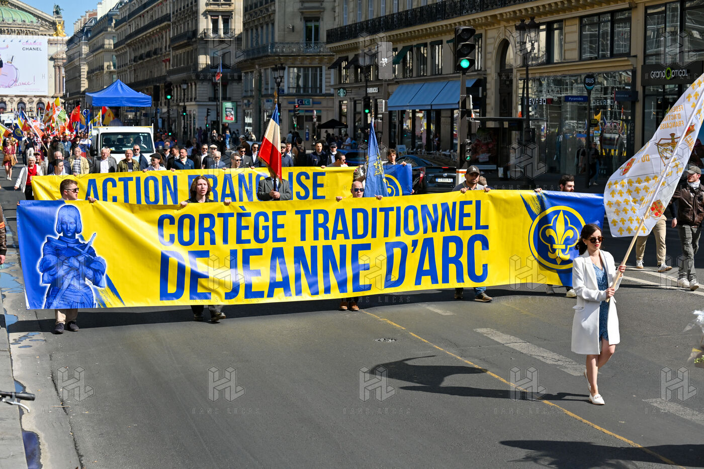 The Action francaise marched on Sunday May 14 in tribute to Jeanne d Arc. The gathering moved from the Opera toward the statue of Jeanne d Arc at Place des Pyramides.