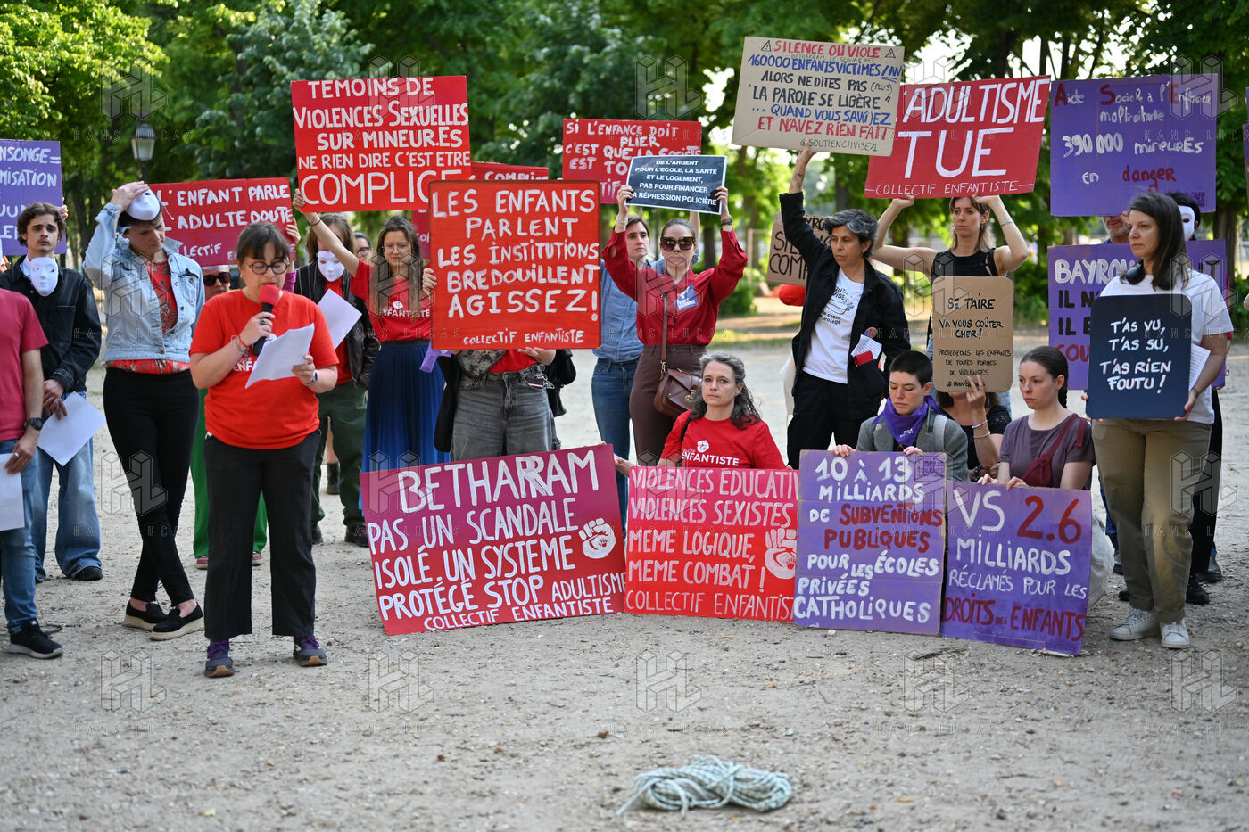 The Enfantiste collective gathered with other associations outside the National Assembly during the hearing of François Bayrou by the parliamentary commission of inquiry tasked with evaluating the State's oversight of violence in schools. Protesters denounced the authorities' inaction in response to violence against children, particularly in the Betharram institution, and called for the Prime Minister’s resignation, arguing that he could not have been unaware of these repeated incidents. They also demanded the implementation of the recommendations issued by the Ciivise to better protect children in both public and private educational institutions, as well as in care facilities and families. Several collectives, including NousToutes, Enfantiste, and Révolution Féministe Versailles, took part in organizing this protest.