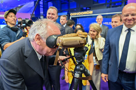 Le Premier ministre, François Bayrou en visite au Salon international de l aeronautique et de l espace au Bourget (SIAE).