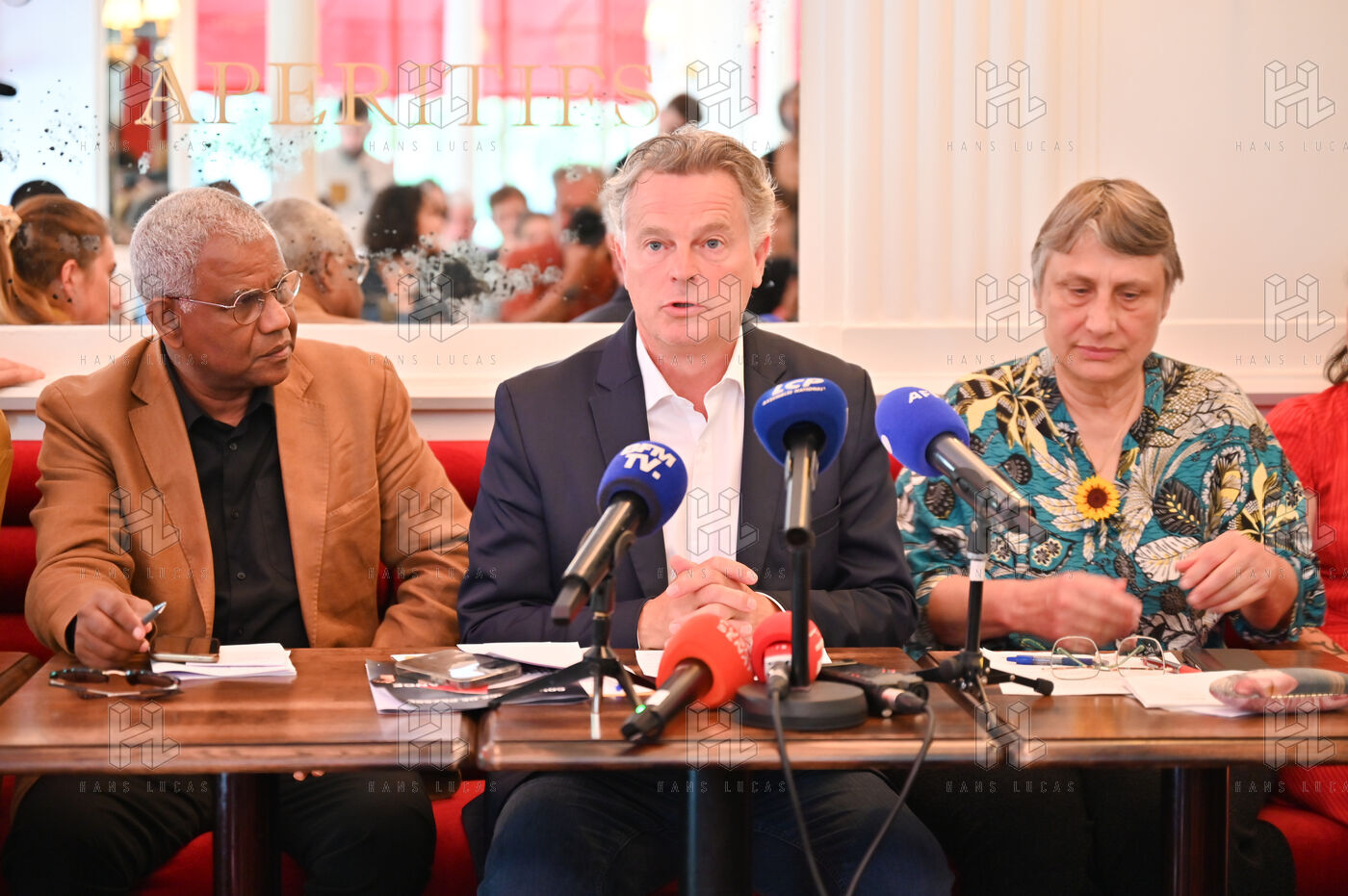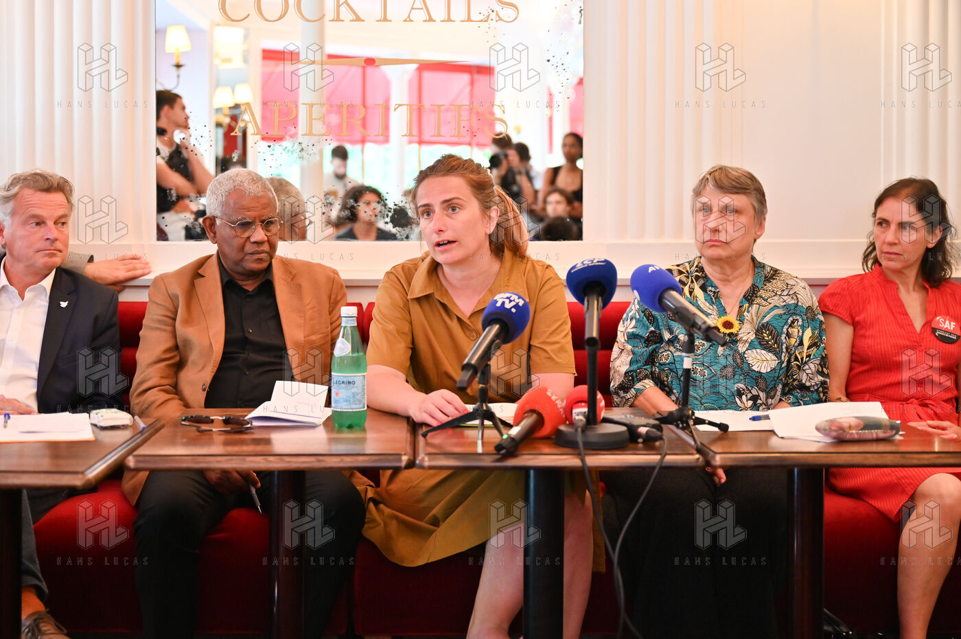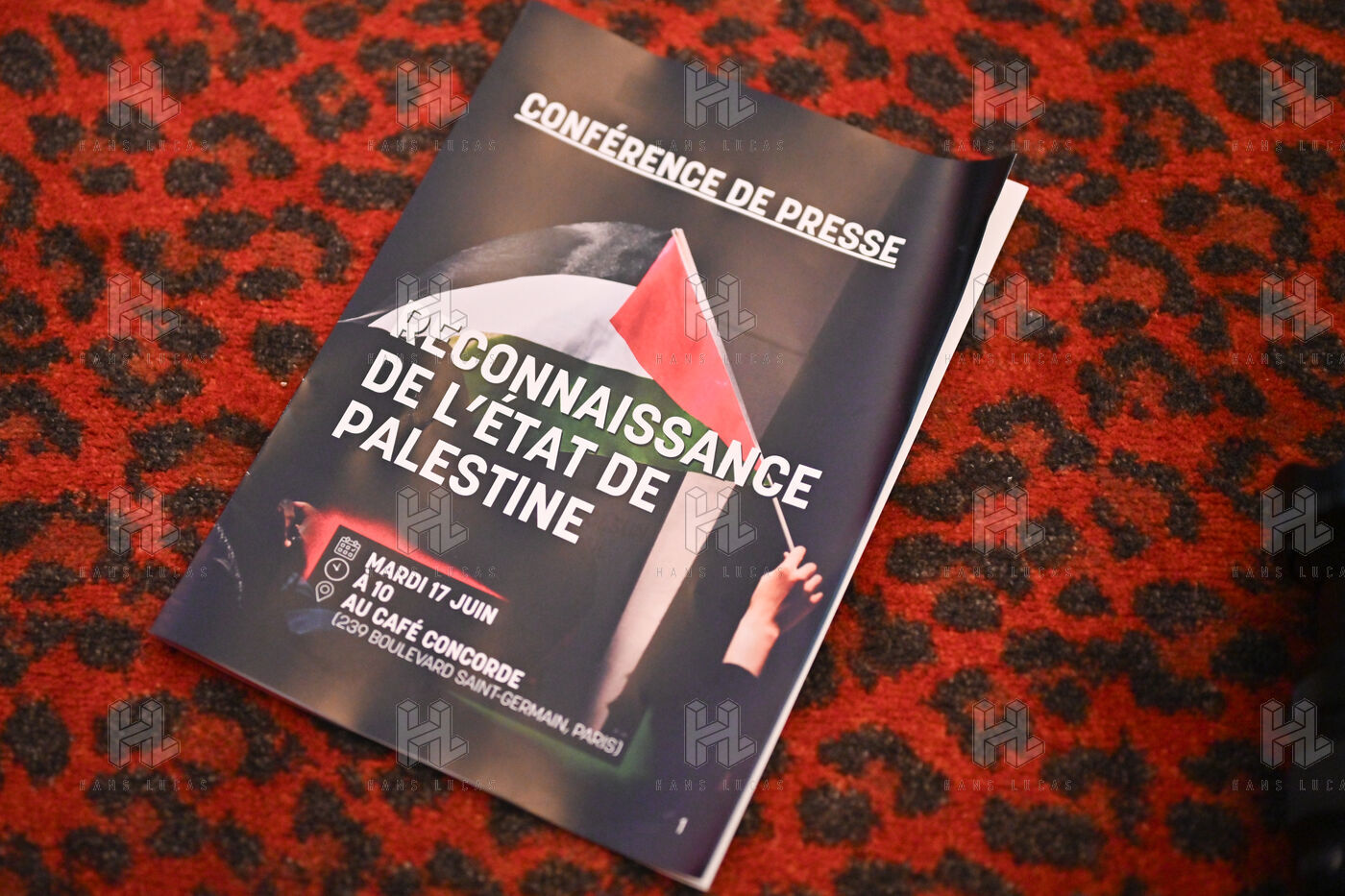 Conférence de presse pour la reconnaissance de l’Etat de Palestine au café Concorde en présence notamment de Marine Tondelier, Olivier Faure et Fabien Roussel.