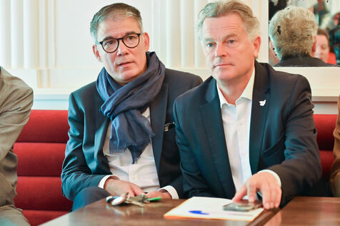 Press conference for the recognition of the State of Palestine at the Concorde café, notably attended by Marine Tondelier, Olivier Faure, and Fabien Roussel.