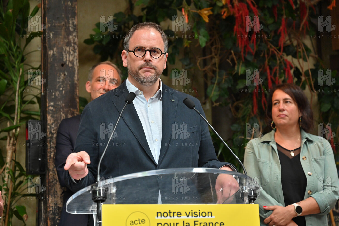 Raphael Glucksmann presents the program of his party Place publique during a press conference held at the Comptoir general.