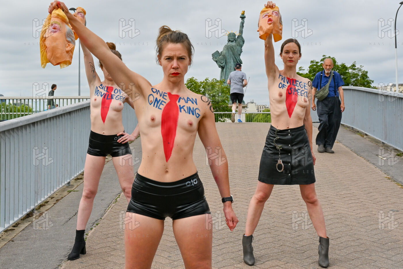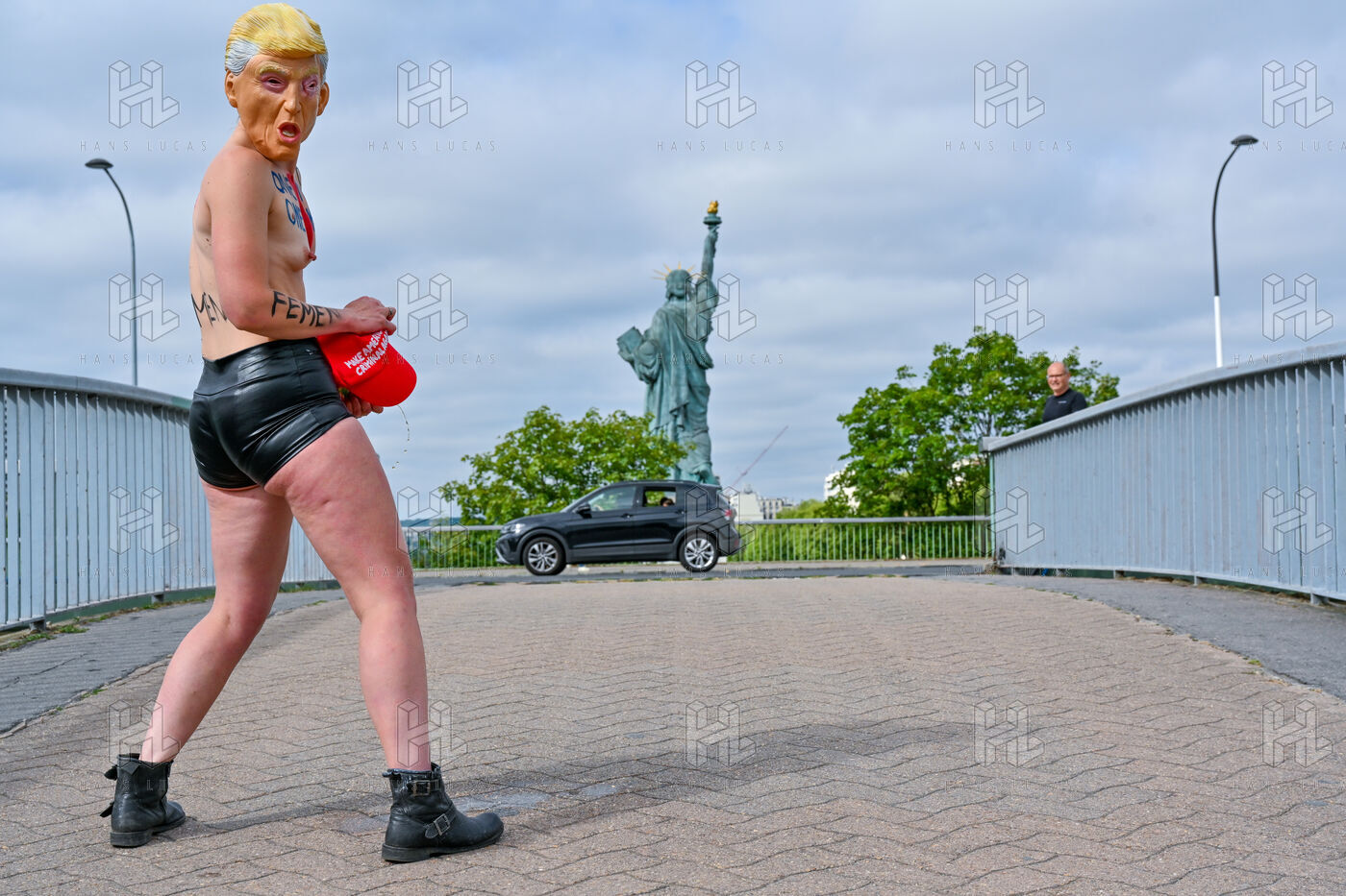 Five activists from the FEMEN movement staged a militant action in Paris on July 4, 2025, the American Independence Day. Dressed as Donald Trump, they performed a symbolic protest against the U.S. president's authoritarian policies. Armed with whips, they targeted the Statue of Liberty, a Franco-American symbol. Their message: “Make America Criminal Again!”