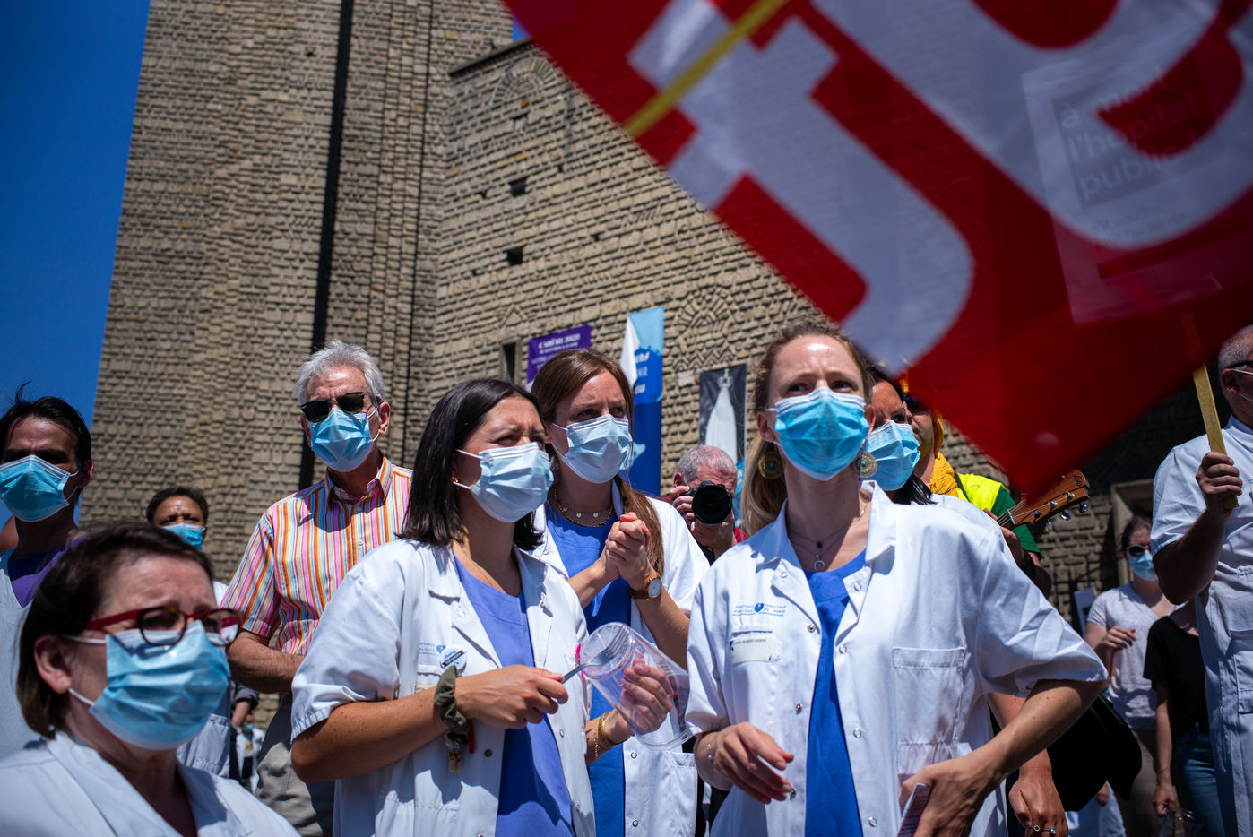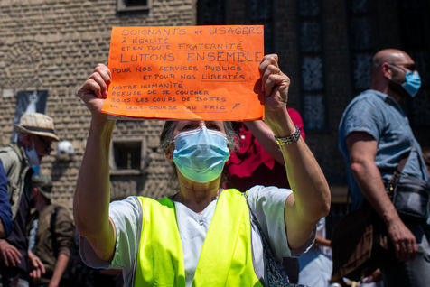 After 2 months of a health crisis at covid19 , the nursing staff of the Robert Debre Hospital gathered to demonstrate for a fairer health system and less in line with market logic, the latter being the cause of a serious lack of human and material resources. ?