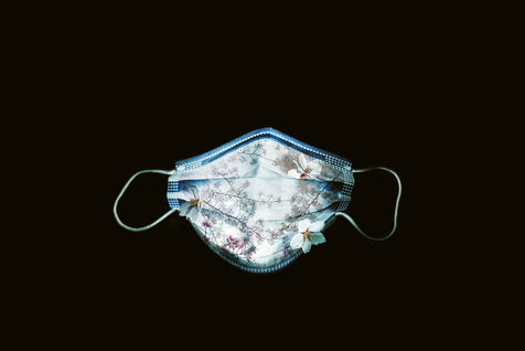 Illustration d un masque medical type IIR en photomontage avec des fleurs de cerisiers. Metaphore d un printemps sous covid et re-confinement suite aux nouvelles mesures de confinement annoncees par jean Castex pour tenter de freiner l epidemie de coronavirus dans 16 departements. Paris, France, 2021/03/19