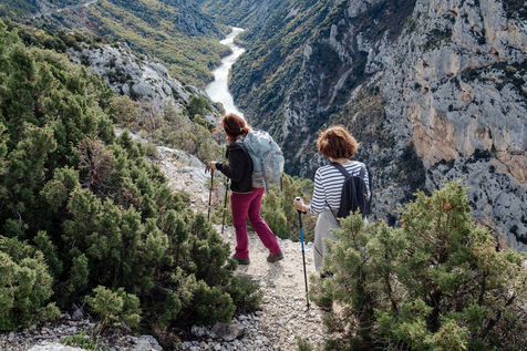 Clemens Hesse, of German origin, created "Chemin de la Santé" in 2012. Nutritionist by training, he offers fasting and hiking retreats in various locations in France. The fasting lasts for 5 days and is of "Buchinger" type, named after the German doctor who developed it. This type of fasting limits the intake to fruit juices, herbal teas, water and honey for a daily caloric intake of about 250 kcal (the recommended intake for an adult is about 2400 kcal per day). We followed a group of 16 people who came to fast at the Monastère de Ségriès in Provence. On average, 50% of the participants are first-time fasters and 50% are people who already tried to fast at home or in a supervised manner, as it is the case here. Many were encouraged to come by friends who already tried it. Some are looking for alternative solutions to improve health problems. Fasting is supposed to help reduce inflammation. No one mentions weight loss as the main motivation, but all agree that losing 2 to 3 kg "never hurts". A well-established schedule sets the rhythm of the week. The fasters start each day at 8.30 am with a muscular awakening orchestrated by Johanna, a 36-year-old naturopath, who takes care of the participants throughout the week. After a glass or two of fruit juice, the group starts the daily hike in the magnificent setting of the Gorges du Verdon. Back at the monastery around 2pm, the hikers can spend their afternoon as they wish. Some treatments are offered in option such as facial massages, reflexology or physiology. These treatments are in addition to the cost of the retreats, which amounts to nearly 1,200 euros per week per person (transport is not included).