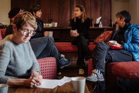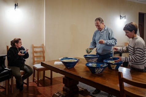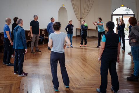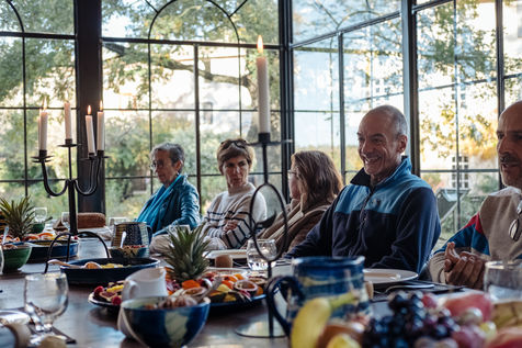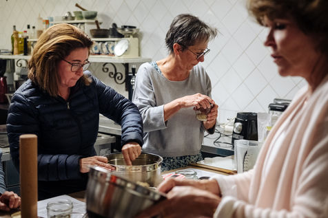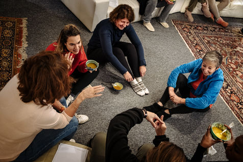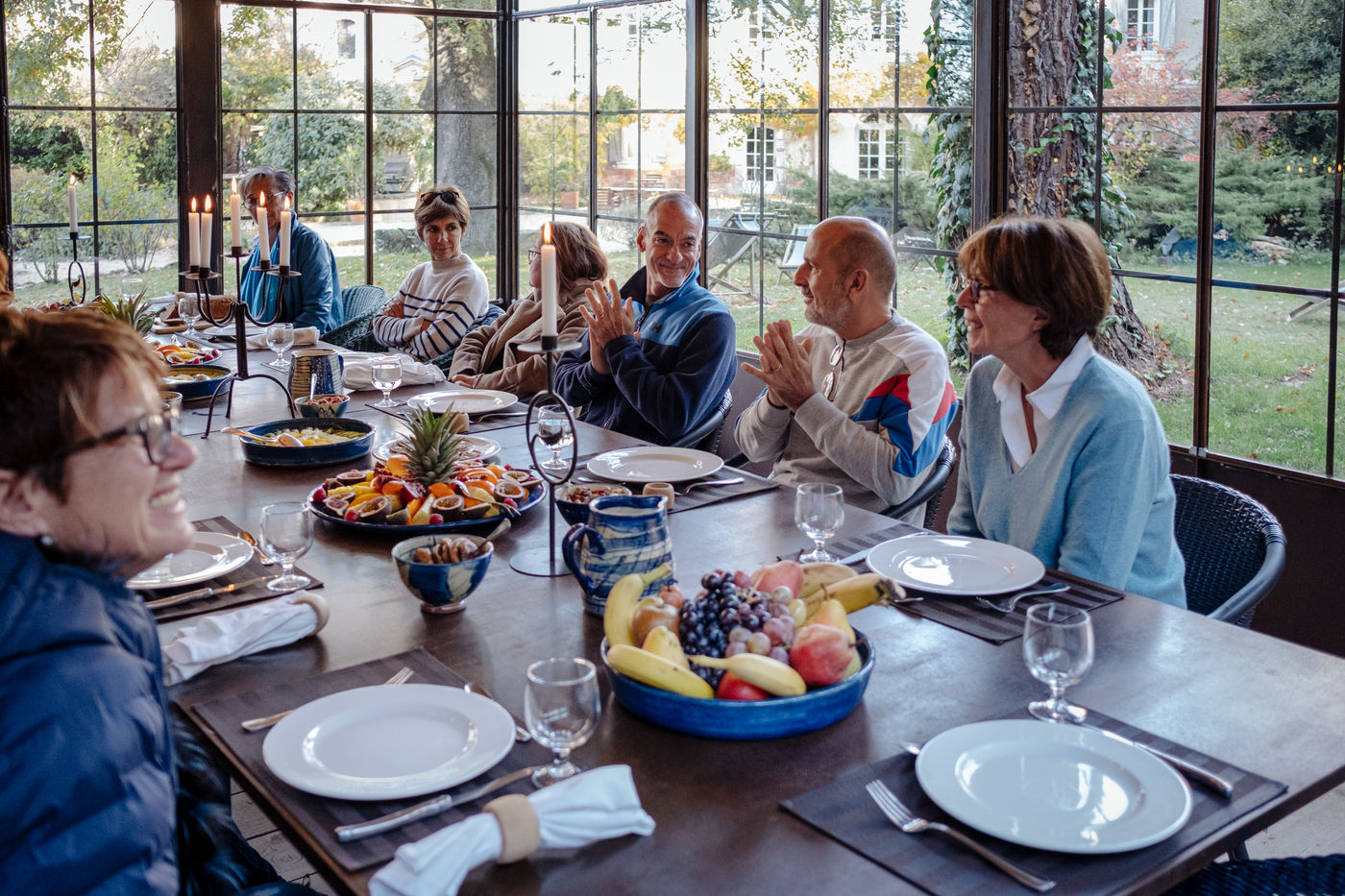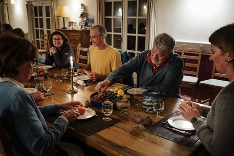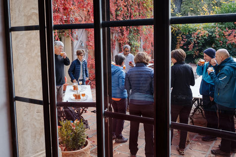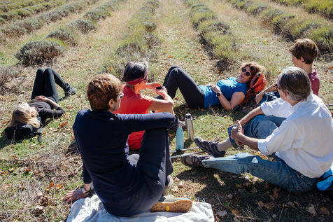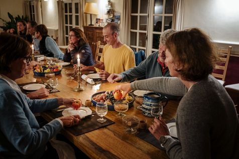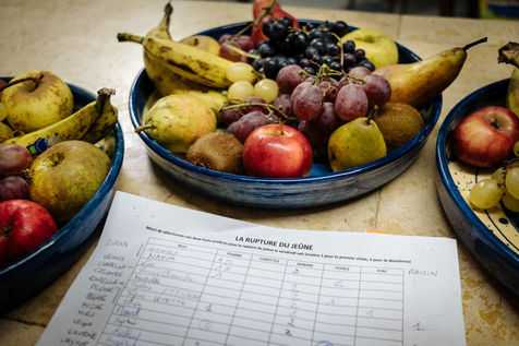 At the end of the day, Johanna leads thematic conferences. They give some keys to understand what is happening in their bodies during the fasting process. The fasters are then invited to have the daily clear broth. How do the fasters feel after two or three days without eating? Most of them have a smile on their face every morning. Few people feel uncomfortable with the lack of food. Out of 16 trainees, only two have difficulties on the third day of the fast, which is considered to be the most difficult. On the evening of the fifth day of the fast, the participants meet in the dining room where they usually take their broth. This time large baskets of fruits are placed on the table. Each trainee can take the fruit that he or she had previously indicated on a "breaking the fast" sheet. The moment is solemn. Some trainees do not have an appetite and do not finish their fruit. Others take one more. A frugal banquet brings the fasting and hiking retreat to an end. In the taxi that takes the participants back to the train station, we can feel the tiredness coming from a busy and unusual week. The landscapes pass by, sometimes we can see a ploughed ochre earth, other times fields of lavender waiting to bloom again next spring.