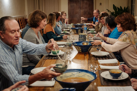 En fin de journée, Johanna anime des conférences thématiques. Elles donnent quelques clés pour comprendre ce qui se passe dans leur corps pendant le processus de jeûne. Les jeûneurs sont ensuite invités à prendre le bouillon clair quotidien. Comment se sentent les jeûneurs après deux ou trois jours sans manger ? La plupart d'entre eux ont le sourire aux lèvres chaque matin. Rares sont ceux qui se sentent mal à l'aise face au manque de nourriture. Sur 16 stagiaires, seuls deux ont des difficultés le troisième jour du jeûne, qui est considéré comme le plus difficile. Le soir du cinquième jour du jeûne, les participants se retrouvent dans la salle à manger où ils prennent habituellement leur bouillon. Cette fois, de grandes corbeilles de fruits sont placées sur la table. Chaque stagiaire peut prendre le fruit qu'il a préalablement indiqué sur une feuille de "rupture du jeûne". Le moment est solennel. Certains stagiaires n'ont pas d'appétit et ne terminent pas leur fruit. D'autres en prennent un de plus. Un banquet frugal met fin à la retraite de jeûne et de randonnée. Dans le taxi qui ramène les participants à la gare, on sent la fatigue qui vient d'une semaine chargée et inhabituelle. Les paysages défilent, tantôt on aperçoit une terre ocre labourée, tantôt des champs de lavande qui attendent de refleurir au printemps prochain.