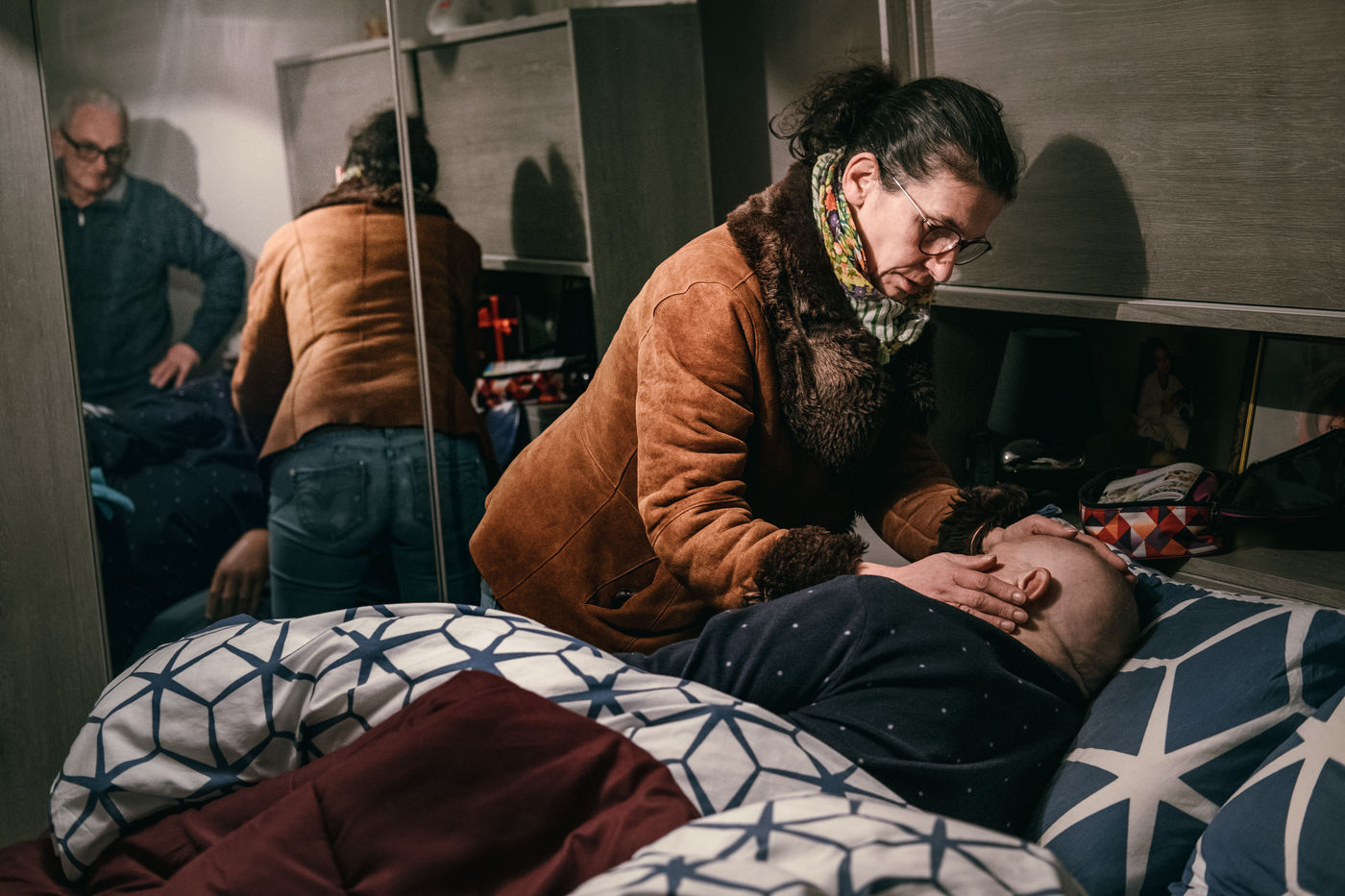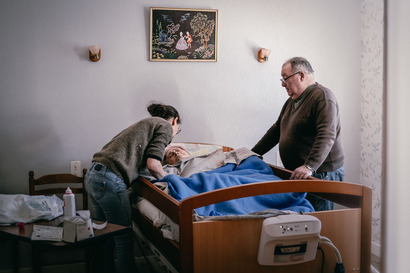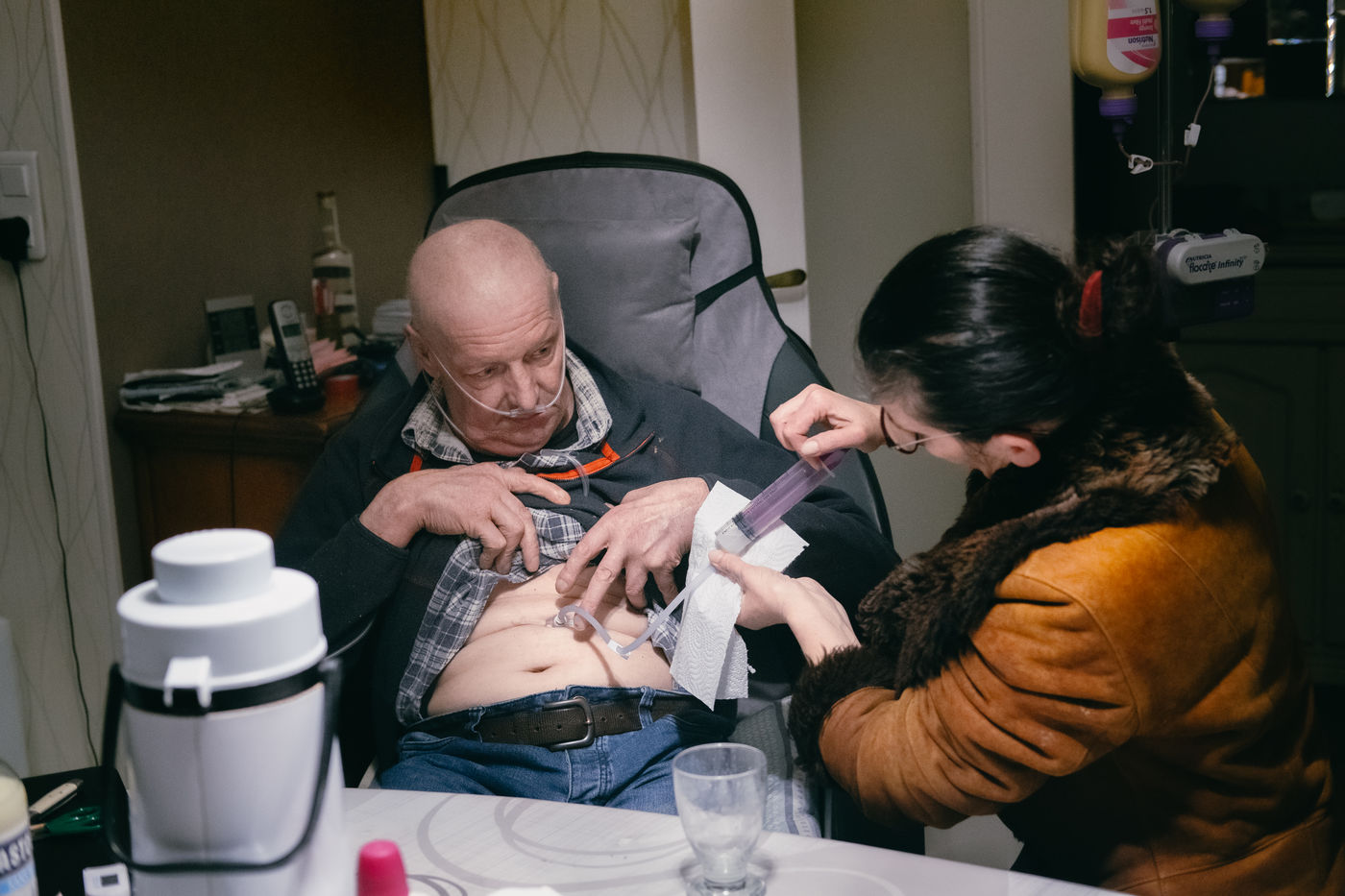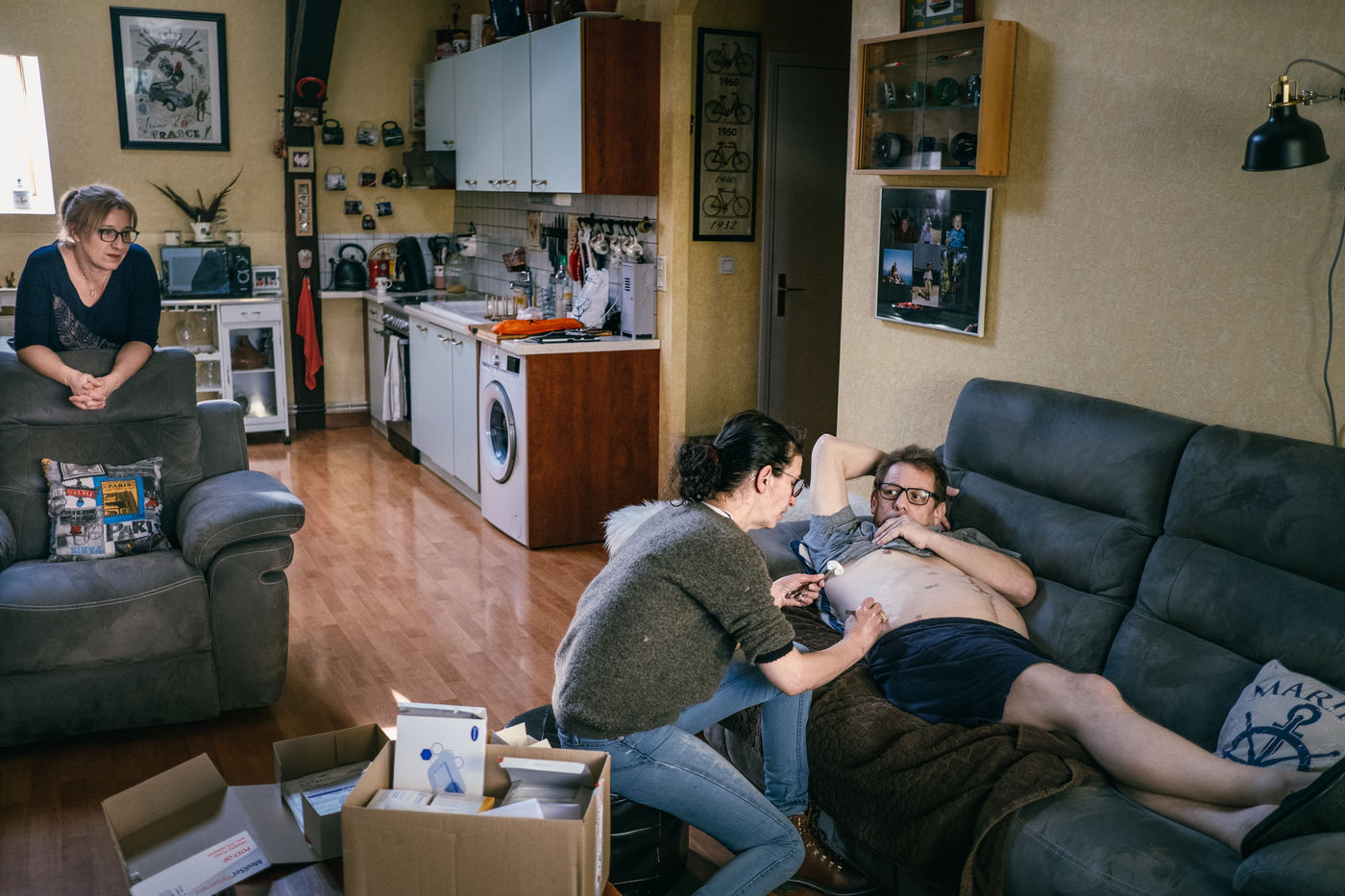 La Securite Sociale tente aussi de reduire les prises en charge des soins. Apres 20h certains soins comme les perfusions sont consideres comme de la « convenance personnelle » et ne sont plus rembourses. Mais comment un pere de famille peut-il profiter de ses enfants si on lui pose une perfusion des 18h ? Sophie continue donc a effectuer les soins aux horaires qui conviennent le mieux a ses patients quitte a ne pas facturer la majoration de nuit. Les proches des patients, elegamment nommes « aidants naturels » par l administration, sont egalement de plus en plus sollicites pour realiser certains soins a la place des professionnels de sante. La notion de proche, etre aime et aimant, prend alors une toute autre nature lorsqu il s agit de faire la toilette quotidienne, d administrer des medicaments ou de refaire des pansements a sa femme, son pere ou sa soeur malade. Presents 7 jours sur 7, ils n ont pas de remplacants et deviennent des soignants avec toutes les consequences que cela peut avoir sur leur vie personnelle