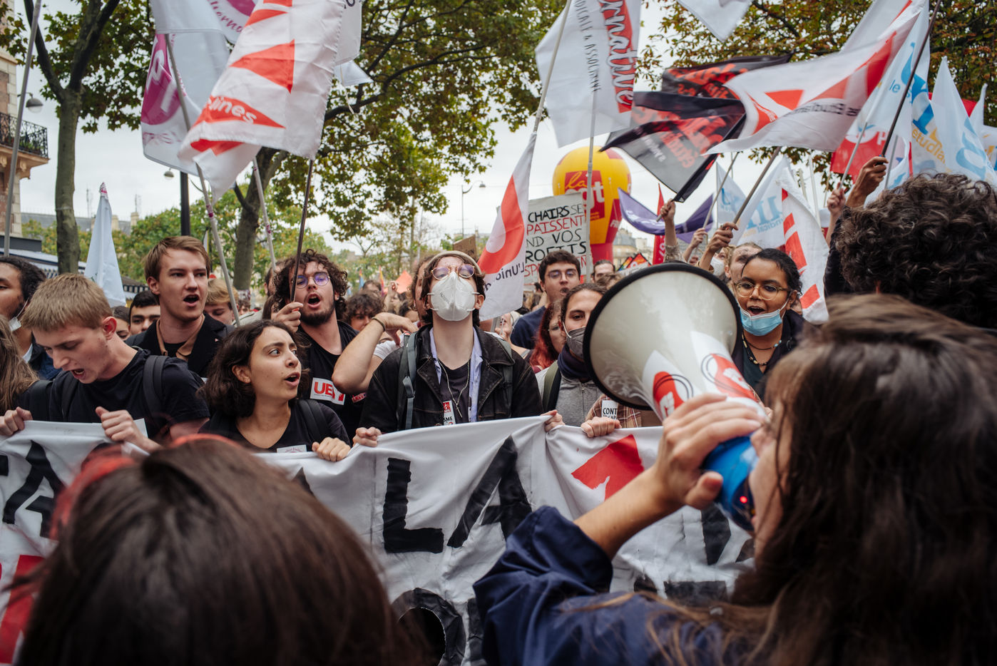 2022, 18 October, Paris (75), FRANCE. National interprofessional demonstration (energy, health, transport, public service, education) called by the CGT for wages and against requisitions.