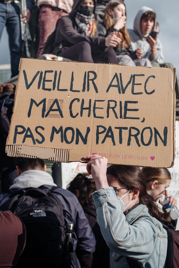 2023, 13 April, Paris (75), FRANCE. Day of mobilisation, strikes and demonstrations to contest the pension reform passed by force with the use of 49.3 by the Prime Minister Elisabeth Borne.