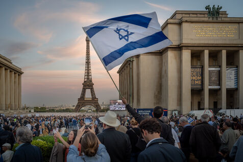 09 october 2023, PARIS (75), FRANCE.. Solidarity" march and rally at Place du Trocadero called by the CRIF (Conseil Representatif des Institutions Juives de France), in support of Israelis hit by Hamas terrorism.