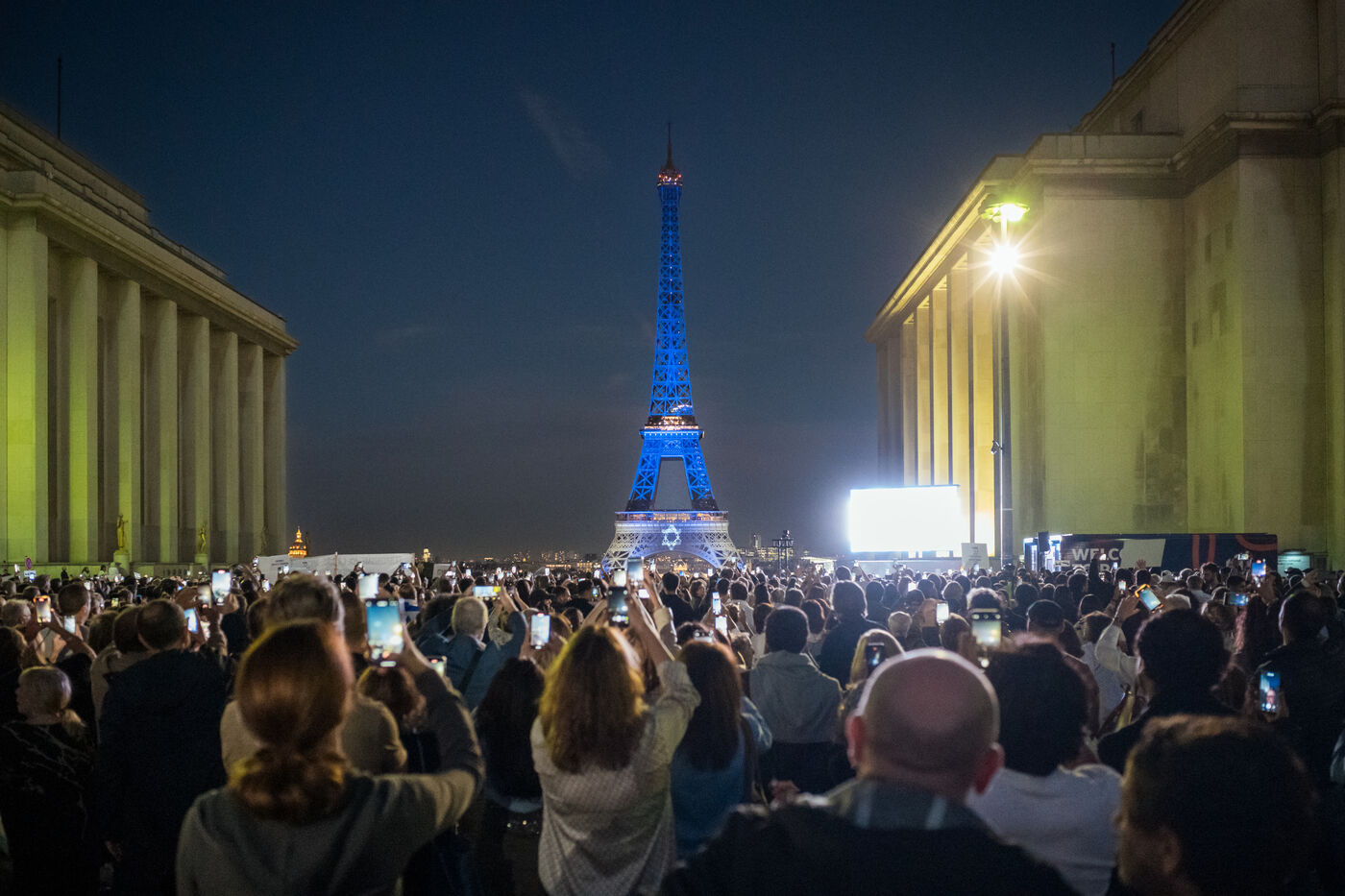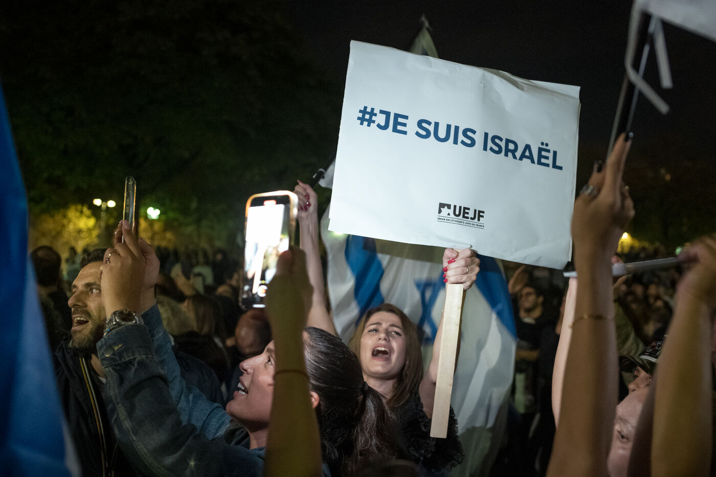 09 octobre 2023, PARIS (75), France. Marche « de la solidarite » et rassemblement place du Trocadero a l appel du CRIF (Conseil Representatif des Institutions Juives de France), en soutien aux Israeliens frappes par le terrorisme du Hamas.