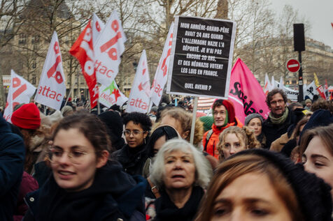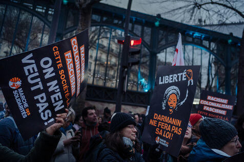 2024, 14 January, Paris (75), FRANCE. A large number of groups, associations, trade unions and political parties are calling for a demonstration against racism and xenophobia and against the Asylum and Immigration Act.