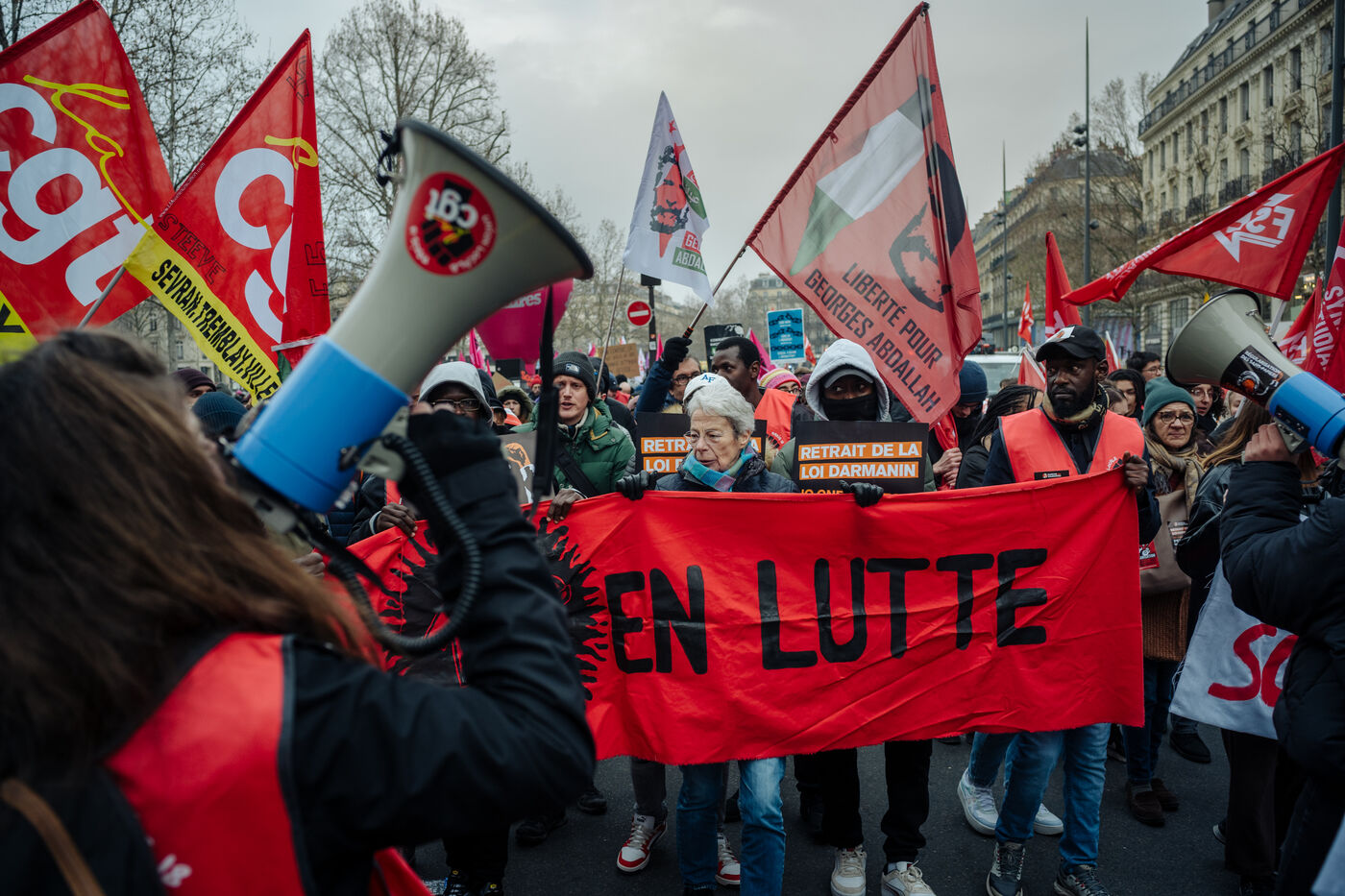 FRANCE - PARIS 14 JANVIER 2024 - MANIFESTATION RETRAIT DE LA LOI DARMANIN