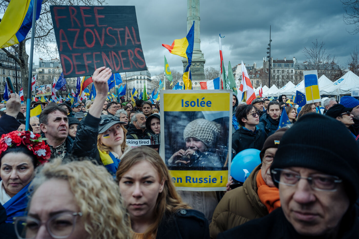 2024, 24 February, Paris (75), FRANCE. Demonstration in support of the Ukrainian people 2 years after the Russian invasion of Ukraine.