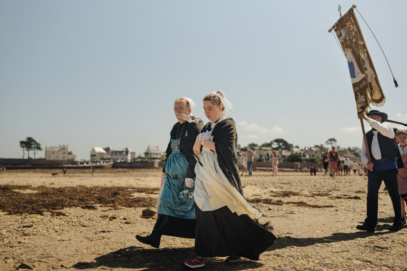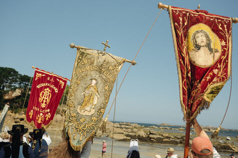 Sunday, August 10, 2025, Pardon of Callot Island. The Pardon of Our Lady of Callot Island is an annual Catholic pilgrimage. It brings together hundreds of faithful, often dressed in Breton costumes, in a procession from the port of Carantec to the small chapel standing at the highest point of the island . 2025 08 10, CARANTEC, France.