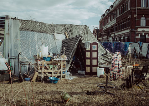 Here, more than thirty undocumented and homeless people are sleeping, living or surviving as best they can, without water or electricity, with a lot of imagination, resourcefulness and the help of several neighbors and associations. They do not all defend the same causes and do not all have the same vision of the place. However, the exceptional circumstances of confinement lead them to meet and try to work together.