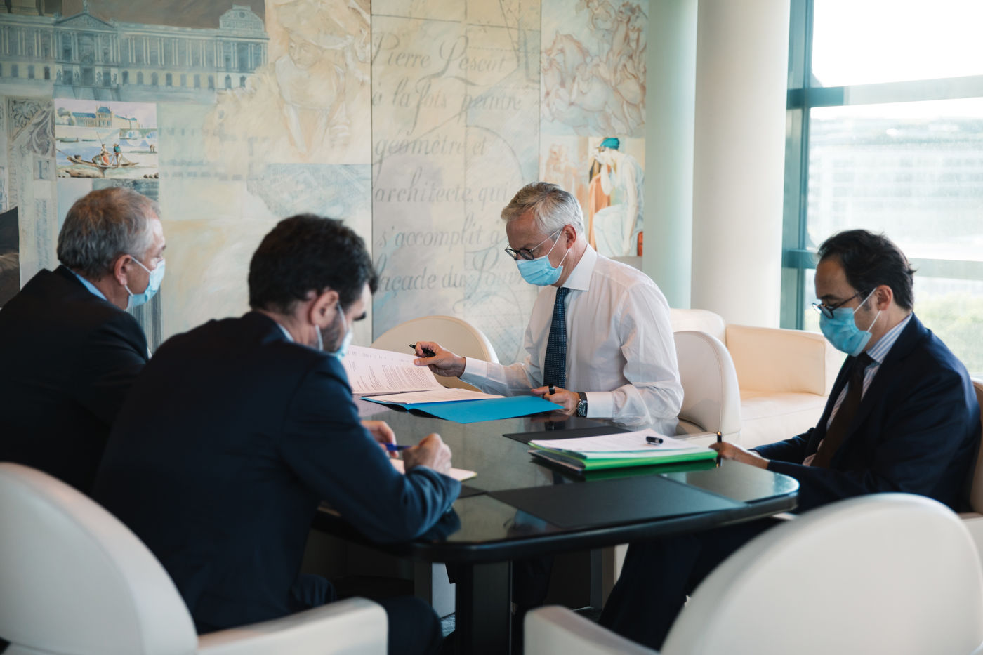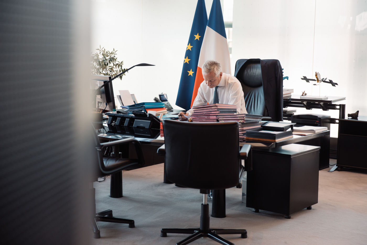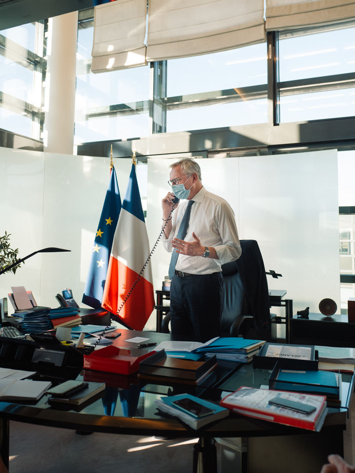 Pour faire face à l'épidémie de Covid-19 et relancer l'économie , le gouvernement a annoncé qu'il mobiliserait 100 milliards d'Euros en deux ans. Un plan de relance basé sur la cohésion (35,4 milliards d'euros), la compétitivité (34,8 milliards) et l'écologie (30,2 milliards). Immersion le temps d'une journée, à Bercy, dans les pas de Bruno Le Maire, le ministre de l'Economie et des Finances et de ses collaborateurs. Un reportage issu d'une commande pour le magazine Capital, publié en octobre 2020.